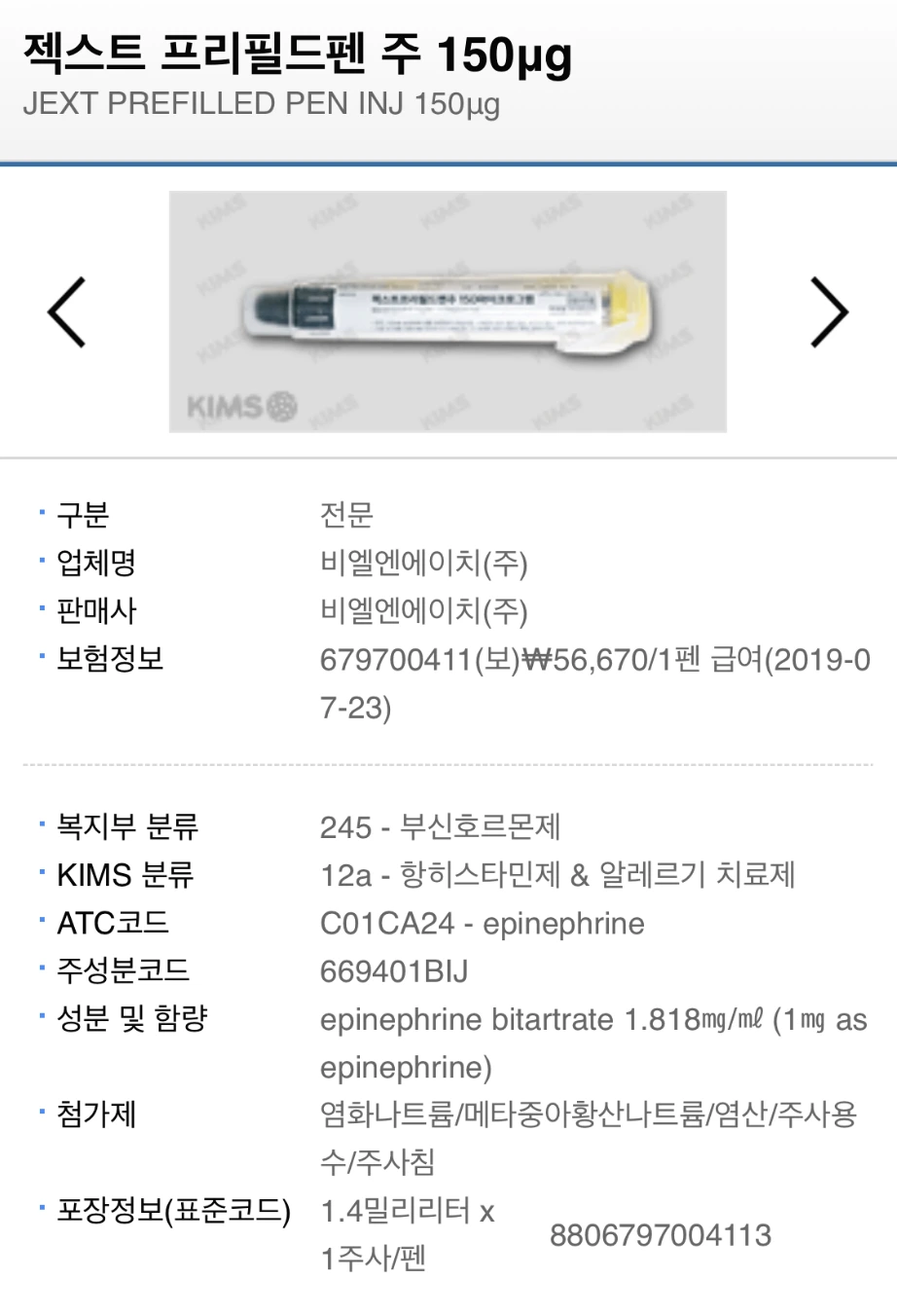 아나필락시스는 흔하다면 흔하고, 흔하지 않다면 흔하지 않은 질환이다. 예측할 수 없기도 하고 말이다. 그래서 몇 명에게 필요한 약물인지 그 이익 구조를 예측하거나, 매출을 통한 수익을 예상하기 어렵기도 하다. 때문에 허가를 받고도 유통을 하지 않기도 했다. 그것 때문에 심한 알레르기를 가진 아이를 학교에 보내야 하는 엄마들의 호소가 주기적으로 이어지기도 했다. 그런 과정들을 거쳐, 한국 희귀 의약품 센터(국내에 허가되지 않은 약물이나, 허가는 되었어도 상업적으로 유통되지 않는 약물의 유통을 담당한다)를 통해 공급이 되다가, 작년 초부터 지금은 급여로 유통되고 있는 젝스트 펜, 약 56000원으로 충분히 시간을 벌 수 있는 약이다.