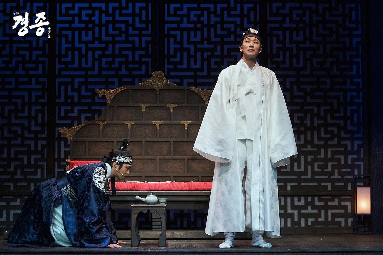 평범한 이과생이었던 내게, 경종은 그저 장희빈의 아들, 유약한 왕 정도에 지나지 않았었다. 아버지인 선왕 숙종과 후대인 동생 영조의 업적이 국사책 전반에 걸쳐 다뤄지는 반면, 짧은 재위 기간 탓 인지 그의 이야기는 잠시 스쳐가는 바람과도 같았다. 그런 면에서 뮤지컬 숙종이나 영조가 아닌 경종에 기반 해 작품을 개발했다는 것 또한 인상적이었다. 극은 용상에 기대 서거나, 앉은(경종 역을 연기하는 배우에 따른 디테일이다) 역사 속 이미지와 달리 지나치게 늠름한 왕 경종의 모습으로 시작된다.