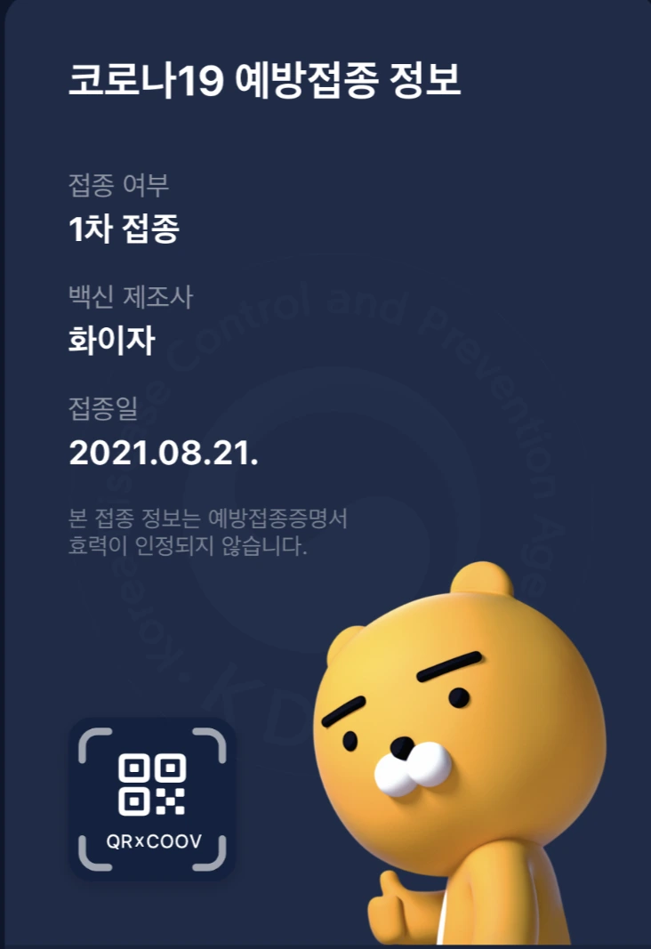 2021. 8. 21(토) 1차 접종