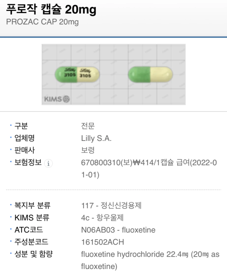 푸로작은 내가 한창 조제 실무를 하던 때엔 캡슐이 아닌 확산정이었는데, 내가 약사가 되기 한참 전부터 있었던 이 약의 별명이 "행복을 파는 약"이었다는 건 처음 그 말을 들었을 때부터 약사로 십 년 넘게 살아온 지금도 좀처럼 잊을 수가 없다. 행복을 어떻게 사고팔 수 있다는 것 인지. 푸로작이 있다면, 다이애나가 꿈꾸는 행복 근처에 갈 수 있는 일인지. 마케팅 한번 참 잘했다 싶다.(물론 내 업무 중 일부인 리뷰에 행복을 파는 약과 같은 추상적 문구가 올라온다면 당연히 바로 리젝이다. 한국의 약사법은 그런 광고 문구를 허용하지 않는다)