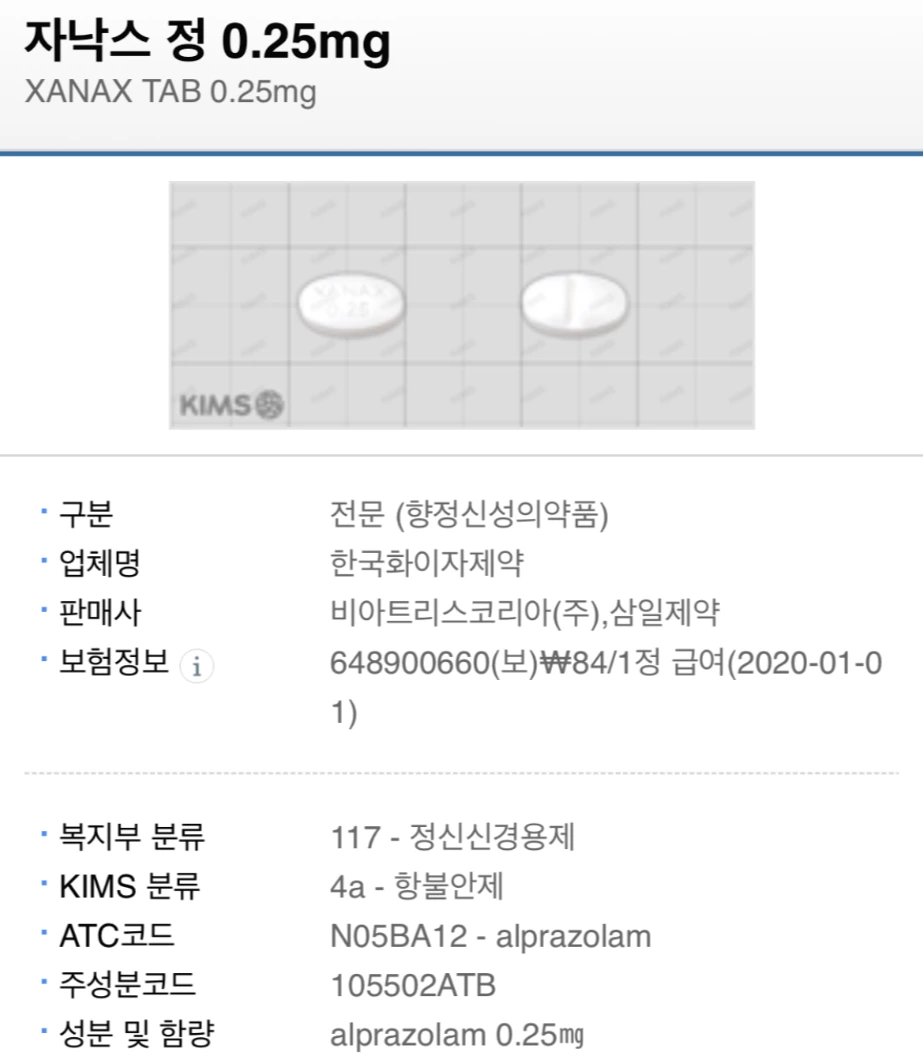 자낙스는 알프라졸람 성분으로 항불안제의 일종인데 (자세한 내용은 수술 전, 그녀의 손끝은 알프라졸람을 향했다 편에서 - https://brunch.co.kr/@musicalpharm/9) 계열로 분류하자면, 개량된 벤조디아제핀계라고나 할까. 한국에서 가장 많이 쓰이는 향정신성의약품이기도 하다.
