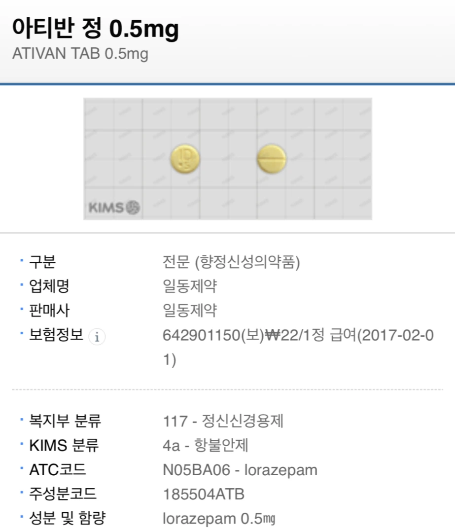 욱할 땐 아티반 알약 하나. 다 내가 아끼는 약물 이름