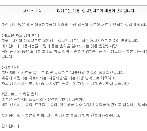 멜론의 실시간 차트 폐지를 지지하지 않는다.