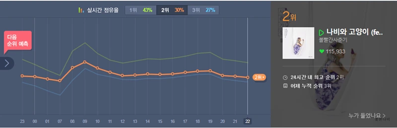 멜론 실시간 차트 그래프 및 5분 단위 점유율 탭