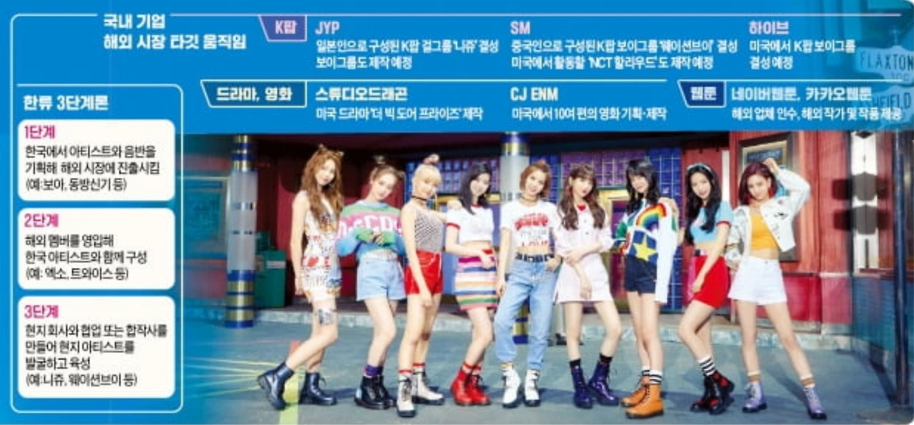 케이팝 2.0: 해외 현지 회사와 합작하거나 해외 멤버를 영입하여 다국적 아이돌을 결성.