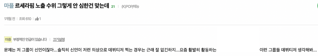 우리는 해당 콘텐츠의 제목과 상통하는 ‘두려움이 없는 당당한 여성’이라는 메시지를 전달받지 못하고 있다. 아이돌 산업에서 고질적인 문제로 자리잡고 있는 ‘섹시 컨셉’을 곡에 어울리지 않게, 심지어 미성년자에게 적용했기에 하이브와 쏘스뮤직에 비판의 화살이 쏟아졌다고 생각한다. 이들을 브랜딩하고 있는 콘텐츠 속에 성적 대상화가 의도되었는지를 떠나서 국내/외 대다수의 KPOP 팬덤은 섹시 컨셉으로 인한 성적 대상화 이슈에 상당히 민감하게 반응한다. 따라서 기획자 입장에서는 이를 유념하고 기획할 필요가 있다.