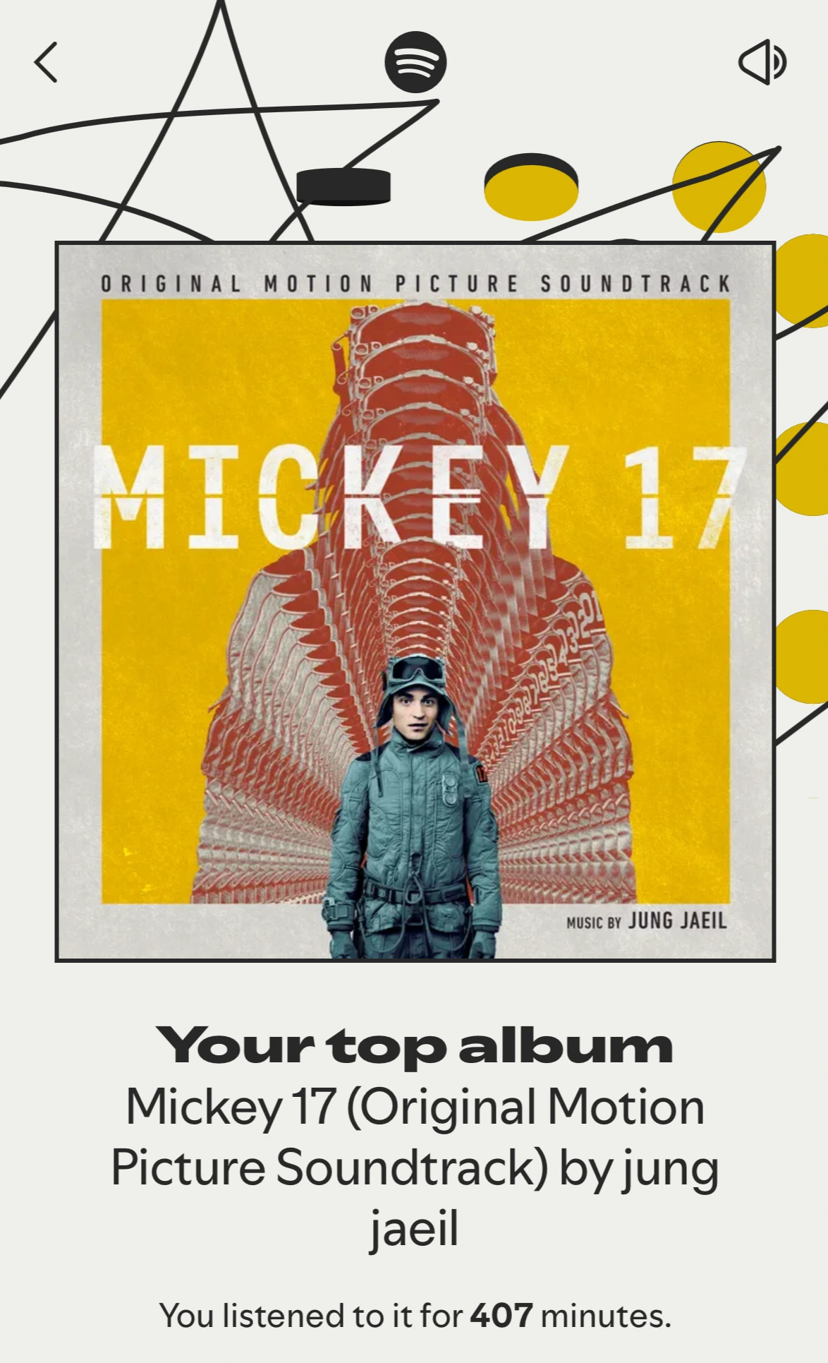 마지막으로 정재일 음악감독님이 작업하신 《미키 17》의 <Nasha>를 추천하고 사라지겠습니다.