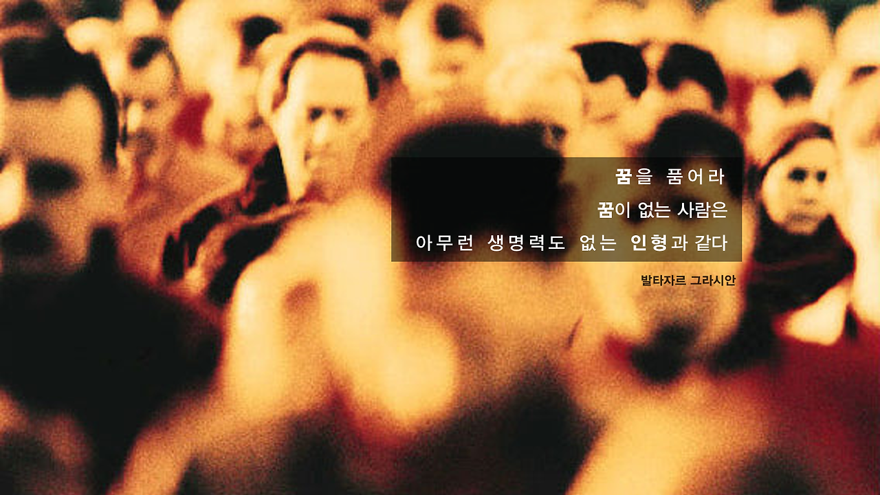 제가 그 많은 명언 중에서 하나를 가져와 봤어요. “꿈을 품어라. 꿈이 없는 사람은 아무런 생명력도 없는 인형과 같다.” 꿈을 가져라, 꿈을 쫓아라... 이런 말 많이 들어보셨나요? 우리는 이런 꿈에 대한 말을 굉장히 많이 듣는 것 같아요.