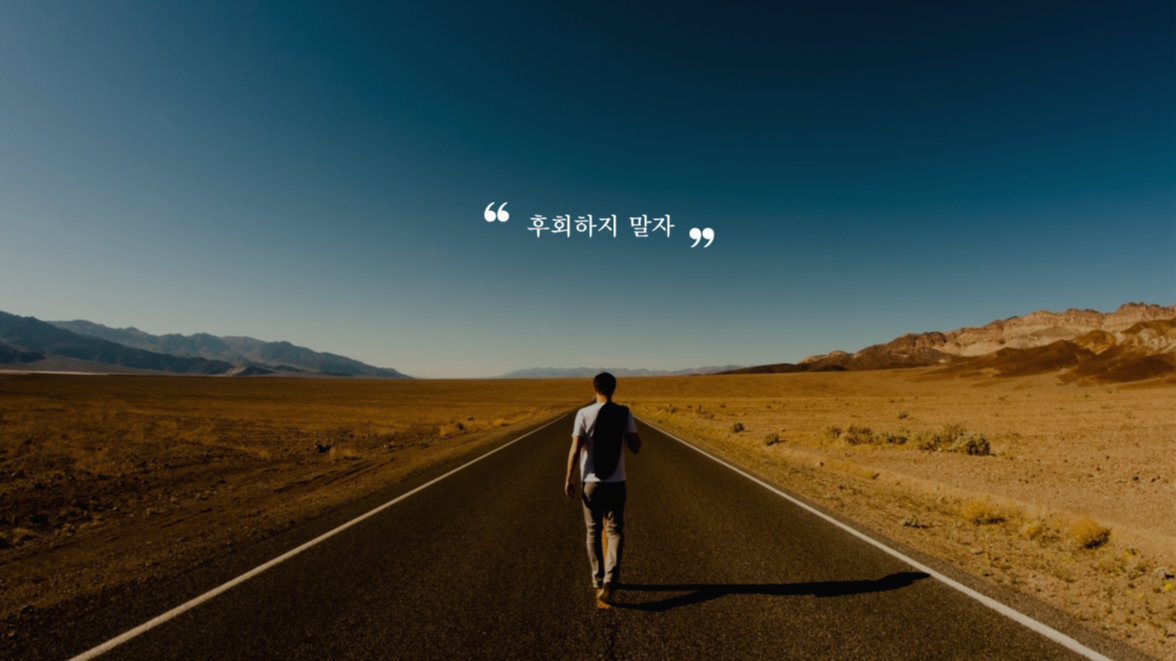 후회하지 말자. 이 말은 제가 휴학을 하면서 더불어 깨달은 거예요. 우리는 살면서 많은 선택들을 합니다. 하지만 우리는 완벽하지 않기에 언제나 완벽한 선택들을 하지는 못하죠. 그래서 나중에 후회하기도 합니다.