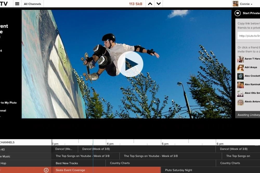 2013년 8월, 미국 캘리포니아에서 Nick Grouf, Tom Ryan, Ilya Pozin이 Pluto TV라는 서비스를 런칭하게 된다. Pluto TV는 당시 YouTube, Vimeo, DailyMotion 등에서 다양한 컨텐츠를 모아서 약 100개의 채널로 제공을 하는 서비스였다. 또한 다양한 TV쇼 (Funny or Die 등) 제작사와의 제휴를 통한 채널도 제공을 하였다.