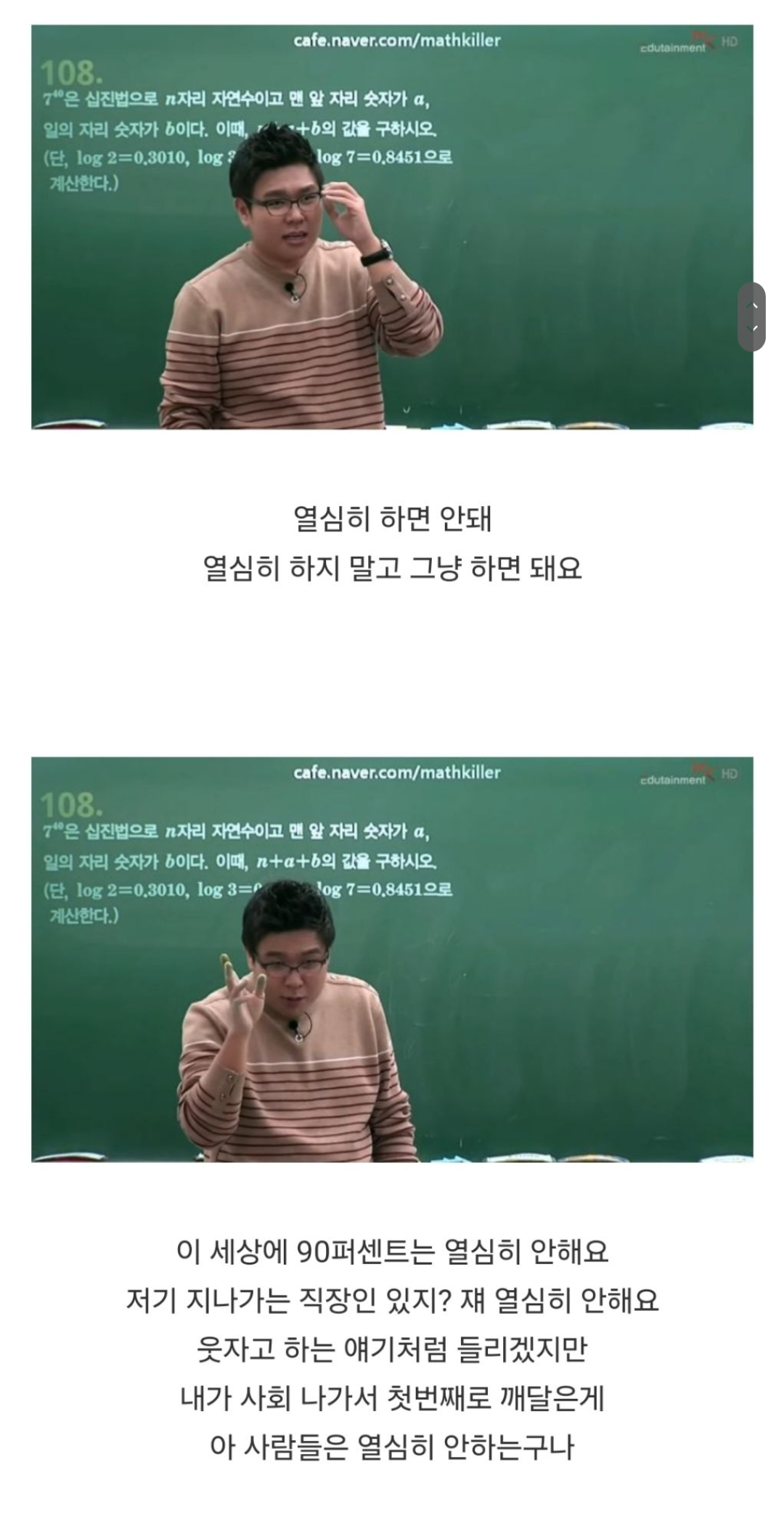 부지런한 누군가가 인터넷에 정승제 강사님의 강의 중 일부를 캡처해서 올려놓은 것을 이번에 또 보게 되었다. 사실 이전에도 본 내용인데, 다시 보니 또 마음을 새로 잡게 된다.