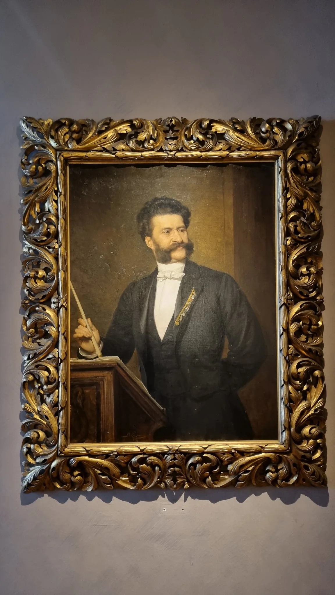 슈트라우스 박물관의 전시는 5개 정도 관으로 나뉘어 있었다. 첫 번째 방은 거실이나 응접실이었을 것 같은데, 이 집은 아니지만 슈트라우스가 말년에 살던 집에서 옮겨온 하우스 오르간*과 스탠딩 책상 등이 있다. 많은 사람들은 여기 들어오면 '요한 슈트라우스 2세와 동시대 스타일로 만든 드레스'에 가장 먼저 푹 빠지곤 하지만, 앞서 나는 이미 파리와 베를린 의상박물관에서 그런 옷은 충분히 보고 왔던지라 슈트라우스의 소장품들을 보는 것이 훨씬 즐거웠다. 나비 모양 지갑이나 방문카드도 그렇지만, 슈트라우스가 이런저런 무도회에서 오케스트라와 함께 곡을 연주해주며 받았던 기념품이나 메달이 무려 20가지가 넘게 들어 있는 유리 전시장이 특히 그렇다. 그런 기념 메달만 해도 20개라니, 이런 숫자를 뛰어넘을 수 있을 정도로 기념품을 많이 받은 작곡가는 리스트뿐일 테다. 변호사 협회, 기관사 협회 등등 상상을 초월하는 곳들에서 무도회를 열었고 감사의 의미로 기념품을 줬음을 알 수 있다. 4번째 전시실로 가면 슈트라우스 2세의 가장 유명한 초상화가 나오는데, 이때 슈트라우스 2세가 하고 있는 약장*들을 보면 무척 재미있다. 슈트라우스 2세의 사진들과 초상화들을 시대순으로 놓고 나열해보면 처음에는 옷에 몇 개 없던 약장이 점점 길게 늘어나고 또 늘어나더니, 말년이 되면 약장이 여덟 개, 열 개 달려 길게 옷에 늘어져 있다. 한 번은 심심해서 이 약장들이 다 어디서 받은 건지 분석해 본 적이 있는데, 프란츠 요제프 황제의 메달부터 시작해 페르시아에서 받은 훈장까지 있었다는 결론이 나왔다. 초상화만 보고도 그 훈장들이 다 알아봐지게 그렸다는 점이 무척 재미있지 않은가? 초상화는 유구하게 남에게 보이고 싶은 자신의 이미지를 주문하는 것인데, 요한 슈트라우스 2세는 남에게 그런 훈장들이 하나하나 알아봐질 정도로 세밀하게 그려달라 부탁했단 뜻이 된다.