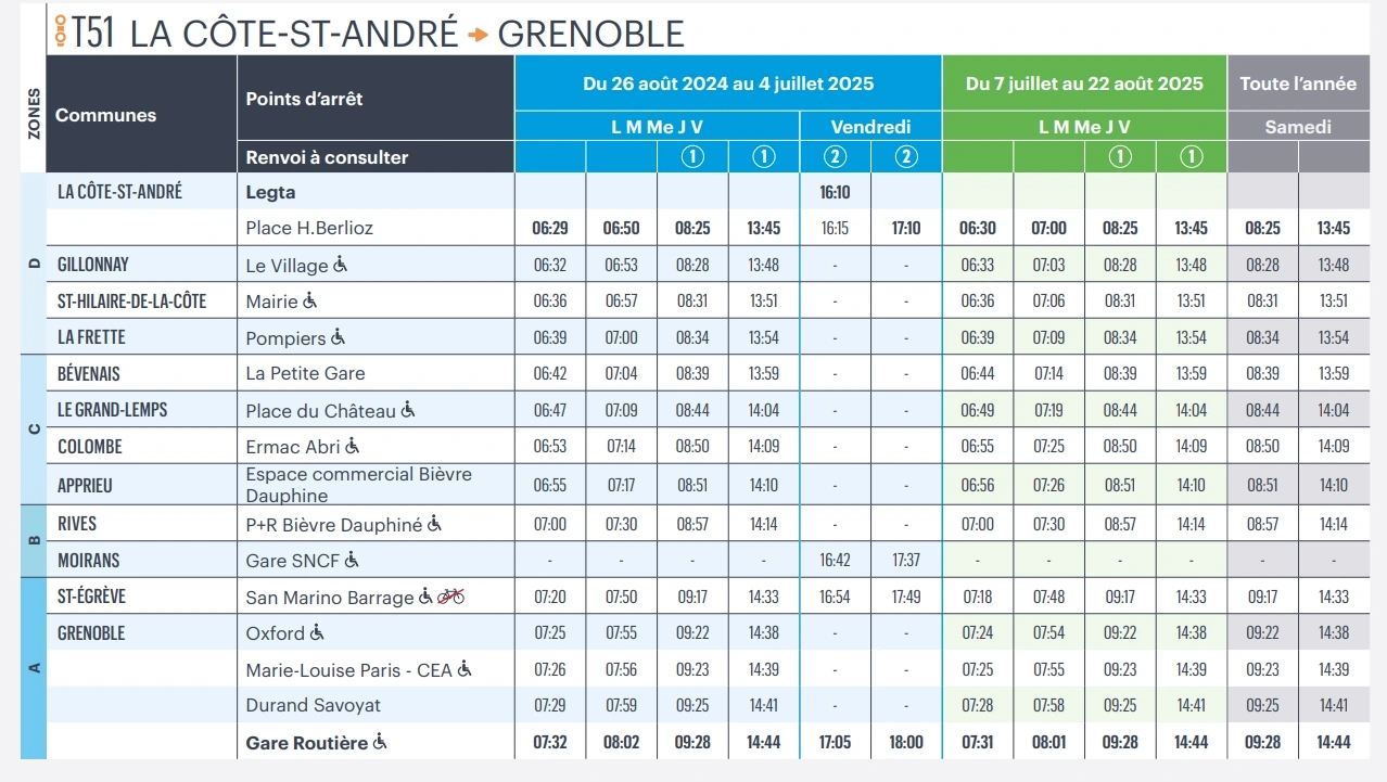 혹시나 베를리오즈 박물관을 가 볼까 생각하는 분들을 위해 시간표를 첨부한다. 코트 생탕드레에서 그르노블로 가는 버스는 금요일을 제외하면 오후 1시 45분차가 막차다. 무슨 이런..