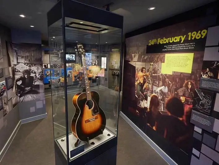 헨델 박물관은 여기서 마무리된다. 이제 '헨드릭스 박물관' 차례다. 헨델과 헨드릭스 사이에는 250년 정도의 간극이 있다. 1942년 미국에서 태어나 1970년 영국에서 죽은 헨드릭스는 블루스나 록이라고는 아무것도 모르는 내가 이름을 들어 봤을 정도로 유명한 기타리스트다. 어느 조사에서나 역대 최고의 기타리스트 순위를 매기라고 하면 1위를 차지하는 소위 말하는 '전설은 아니고 레전드' 라는데, 현대음악에 미친 영향은 어쩌면 헨델보다 헨드릭스 쪽이 더 클지도 모른다. 나도 헨드릭스에 대해서 거의 아는 바가 없어서 검색해 보자 우리가 생각하는 일렉트릭 기타의 소리를 거의 개발해 냈다고 봐도 되는 사람이라는데, 헨드릭스 침실로 들어가기 전 있는 헨드릭스 인생 요약 전시를 보니까... 아니, 인생이 28년 만에 끝나 버리는 것이다. 헨델은 스물일곱 살에 영국으로 이주했는데, 헨드릭스는 그때 죽었다고? 헨델과 헨드릭스가 죽은 나이를 합치면 101이 되는데 이중 74가 헨델이다. 아무래도 헨델이 영국에서 보낸 세월은 45년 이상이고 헨드릭스가 영국에서 보낸 시간은 3년에 불과해서 그런지 박물관의 규모는 헨드릭스보다 헨델 쪽이 훨씬 크지만, 박물관 방문객들은 대체로 헨델보다는 헨드릭스에게 관심이 있어서 찾아가는 것 같다. 근거는 없지만 유튜브에 올라오는 영상이나 리뷰를 보면 헨델 박물관보다 헨드릭스 박물관에 대한 느낌이 많아서 그렇게 생각하고 있다.