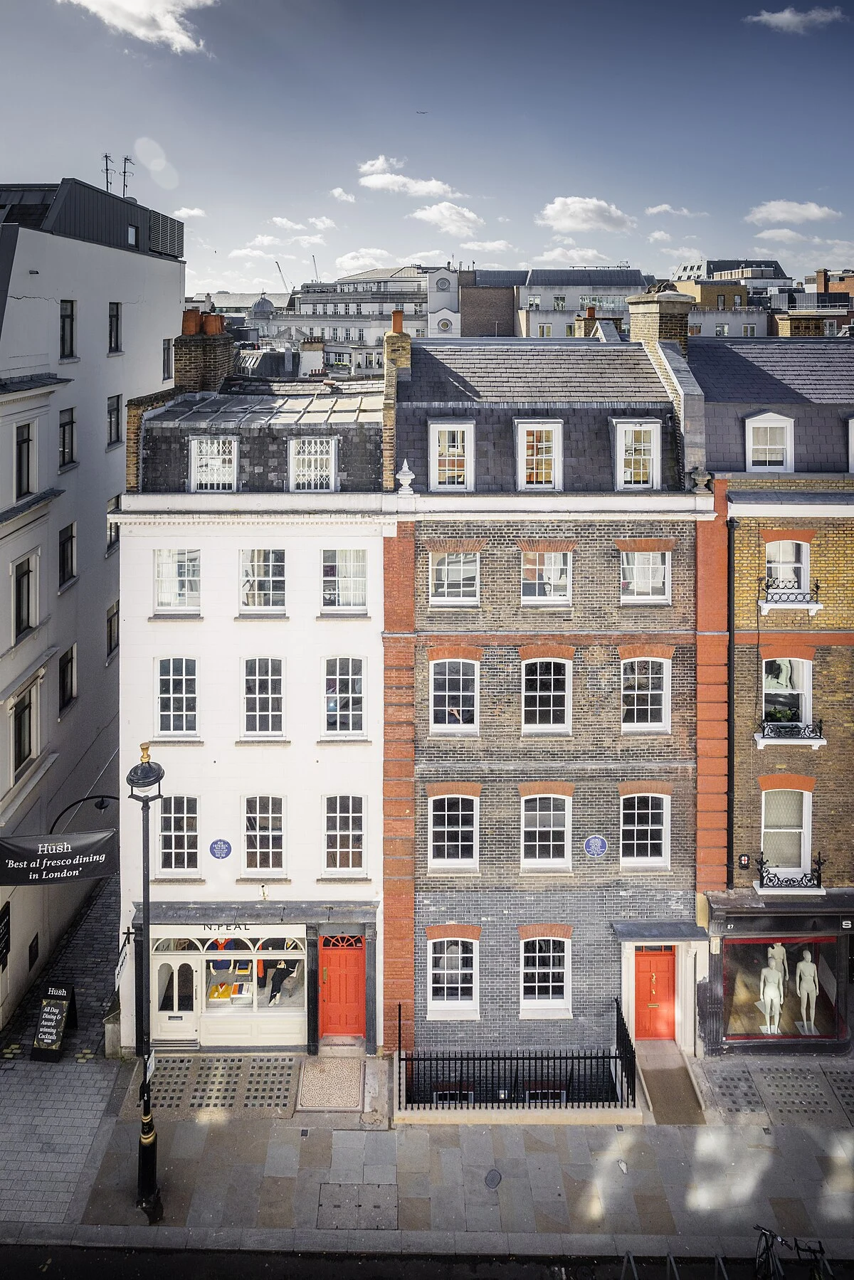 헨델 헨드릭스 박물관. 두 곳에 모두 유명한 사람이 지냈음을 알리는 Blue Plaque가 붙어 있다. (출처: 위키백과)