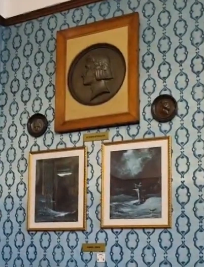 반대쪽의 파란 벽지 방은 노란 방에 비하면 훨씬 화려하다. 방에 들어서자마자 우리 시선을 사로잡는 것은 커다란 피아노 두 대와 벽에 붙어 있는 하모니움 (오르간과 비슷한 것으로 보인다) 두 대다. 건반은 모두 덮개로 덮여 있지만, 어떤 소리가 나는지는 오디오가이드를 통해 들을 수 있다. 하모니움은 확실히 오르간 소리라 그런지 내게 익숙지 않은 소리가 났지만, 피아노 두 대는 내가 아는 피아노와 거의 다르지 않은 소리가 났다. 쇼팽 박물관 인스타그램에서 가끔 연주해 주는 플레옐 피아노의 조용하고 약간 물 먹은 듯한 소리에 비하면, 리스트 박물관의 피아노는 리스트 본인이 피아노를 부수어가며 훨씬 견고하게 만든 덕분에 (...) 현대의 그랜드피아노와 크게 다르지 않았다. 파란 벽지 방에 전시되고 있는 대부분의 피아노나 하모니움은 리스트가 구입한 것이 아니라 선물 받은 것이었다. 아무래도 피아노의 전설로 자리매김한 사람이니까 피아노 협찬은 끝도 없이 받았던 모양이다. 부다페스트 리스트 박물관에는 건반이 있는 악기가 총 일곱 대 있는데, 내가 설명을 제대로 들은 것이 맞다면 한 대를 제외하고는 모두 실제로 리스트가 소장하던 악기들이다. 그 가운데 내 시선을 가장 사로잡은 악기는 방 한가운데, 카울바흐의 1857년 리스트 전신 초상화 바로 앞에 놓여 있는 그랜드 피아노다. 하지만 그전에 1857년 전신 초상화 이야기를 잠깐 해 보자.