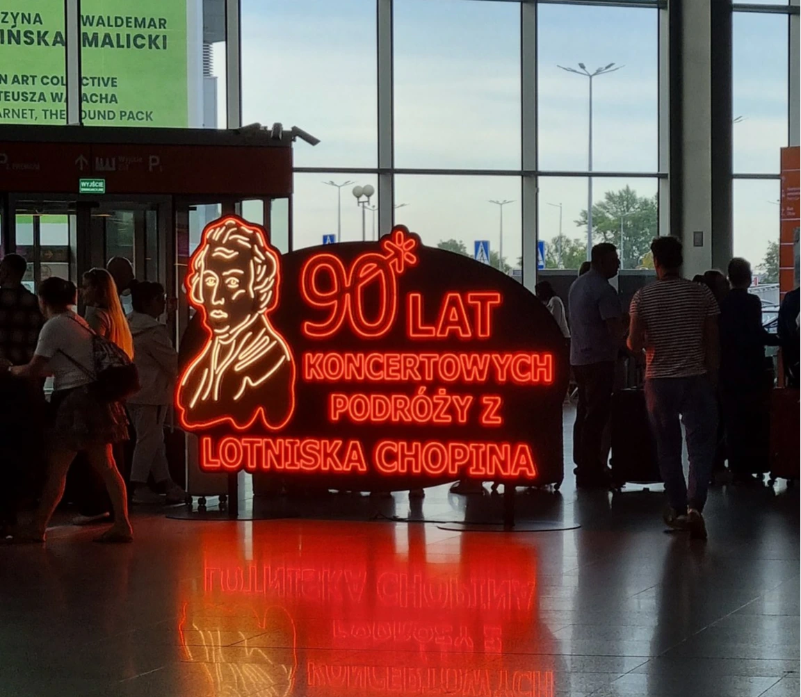 바르샤바 쇼팽 공항의 가장 유명한 기념품 중 하나는 '쇼팽 보드카'다. 보드카의 원산지가 체코인지 폴란드인지는 아직도 논란이 벌어지고 있다고 하는데, 폴란드 측에서는 보드카는 폴란드에서 처음 만들어졌다고 주장한다. 실제 쇼팽은 건강상 문제로 인해 그런 독한 술은 마시지 못했던 것 같지만 어쨌든, 쇼팽 공항에 가면 1992년 처음 만들어진 '세계 최초'라는 프리미엄 보드카, 쇼팽을 잔뜩 팔고 있다. 술을 좋아하지도 않거니와 유리로 된 병을 안전하게 한국까지 들고 갈 자신도 없어서 사지는 않았지만, 폴란드를 가는 애주가들은 반드시 사 오는 술이라고 들었다. 공항에 가 보니까 쇼팽 말고 다른 폴란드 작곡가이자 피아니스트, 그리고 폴란드 총리였던 (이 조합이 가능하다는 것이 놀랍다) 파데레프스키 보드카도 팔고 있었다. 2001년 '쇼팽 공항'으로 이름을 바꾸면서 라운지 이름도 전부 바꿨는지, 프리미엄 라운지들이 죄다 '폴로네즈' '마주르카' '에튀드' '프렐류드' 같은 이름을 붙이고 있다. 내가 바르샤바에 갔던 2024년이 바로 이 쇼팽 공항이 오픈 90주년을 맞는 해였다. 덕분에 '바르샤바 쇼팽 공항 90주년 기념'이라 적힌 LED 조형물도 볼 수 있었다. 앞선 두 곳의 쇼팽 박물관을 운영하는 주체인 쇼팽 인스티튜트가 박물관과도 실제 협력 관계인데, 아쉽게도 공항에서 주의사항을 설명해 주는 캐릭터들이 쇼팽이거나 하지는 않다.