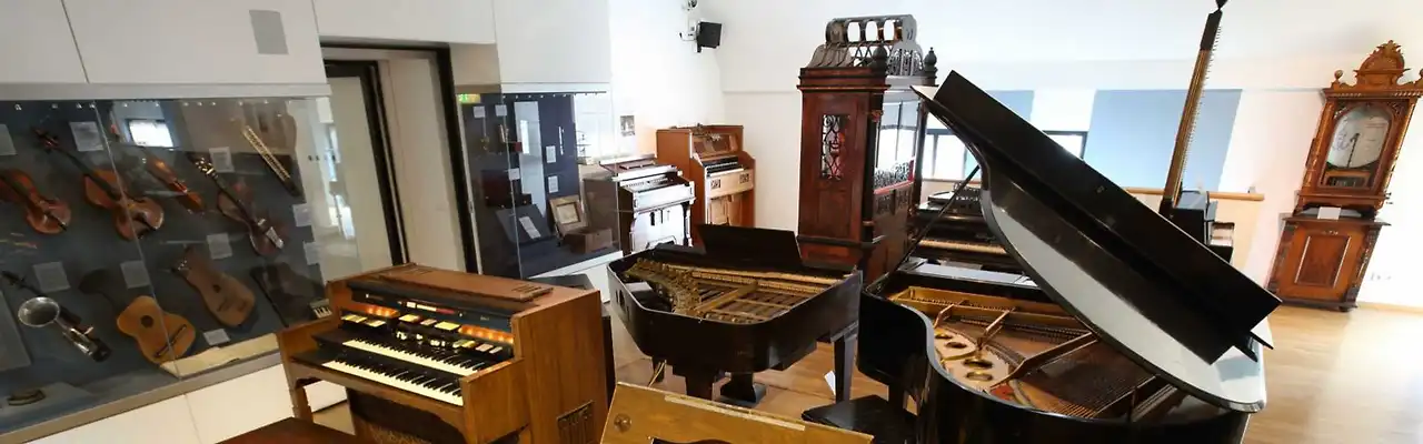헨델박물관 내부의 악기박물관. 왼쪽을 보면 다양한 현악기들이 모여 있는 것을 볼 수 있다. (출처: 헨델박물관)