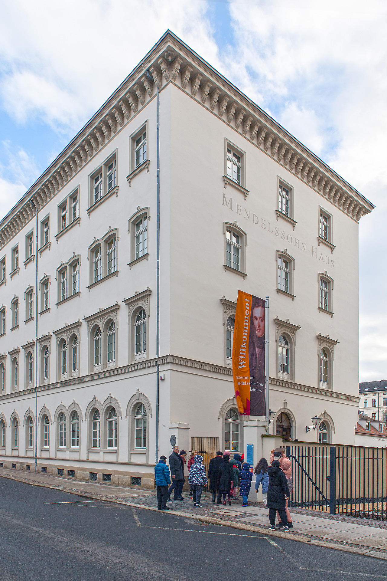 2022년 6월, 나와 내 친구는 바흐 박물관에서 나와 널찍한 도로를 건너고, '링 카페'가 있는 건물을 지나 골드슈미트슈트라세로 진입했다. 벽면에 희미하게 적힌 '멘델스존하우스'라는 글자와 산들바람에 살짝 흔들리는 주황색 깃발이 아니었더라면 그냥 지나쳤을 정도로 평범한 집이었다. 도심 살짝 바깥쪽에 위치한 골드슈미트슈트라세는 라이프치히의 인구가 늘어나면서 대거 건설된 주거단지의 일부였다. 1844년 신고전주의양식으로 건축된 멘델스존의 집에 펠릭스 멘델스존 일가가 입주한 것은 1845년, 멘델스존이 죽기 2년 전이었다. 이때 펠릭스 멘델스존의 가족은 이미 6명, 펠릭스 멘델스존과 아내 세실 멘델스존, 아들 칼 멘델스존과 파울 멘델스존 그리고 펠릭스 멘델스존 주니어, 마리 멘델스존이었다. 멘델스존이 이 집으로 이사 오고 얼마 지나지 않은 1845년 9월에는 부부의 막내딸 릴리 멘델스존이 태어난다. 저런, 펠릭스 멘델스존이 1847년에 죽는다는 것을 알고 아이들의 생년월일을 다시 살펴보면 멘델스존이 죽은 건 첫애가 열 살일 때, 그리고 막내가 두 살일 때다. 심지어 펠릭스 멘델스존이 죽고 6년 만에 아내 세실 멘델스존도 서른여섯이라는 젊은 나이에 세상을 떠 버리니 멘델스존 부부의 아이들은 아무리 많아 봐야 열여섯, 심하면 여덟 살에 고아가 되어버린다. 멘델스존 사후 멘델스존의 아내는 아이들을 데리고 시댁이 있는 베를린으로 이사하니, 이 집은 멘델스존 가족의 딱 2년 만을 함께한 집이다. 하지만 멘델스존이 살았던 라이프치히의 신혼집, 루르겐슈테인스가르텐이나 멘델스존의 십 대와 이십 대 초중반을 책임져 준 베를린의 라이프치히 거리 3번지는 이미 헐렸고 멘델스존이 살았던 건물 가운데 남아 있는 건물은 이곳밖에 없으니, '멘델스존하우스'라는 명칭은 아마 이후로도 멘델스존하우스가 더 생긴다 하더라도 이곳만 쓸 수 있는 명칭일 것이다.