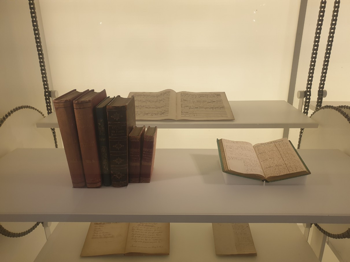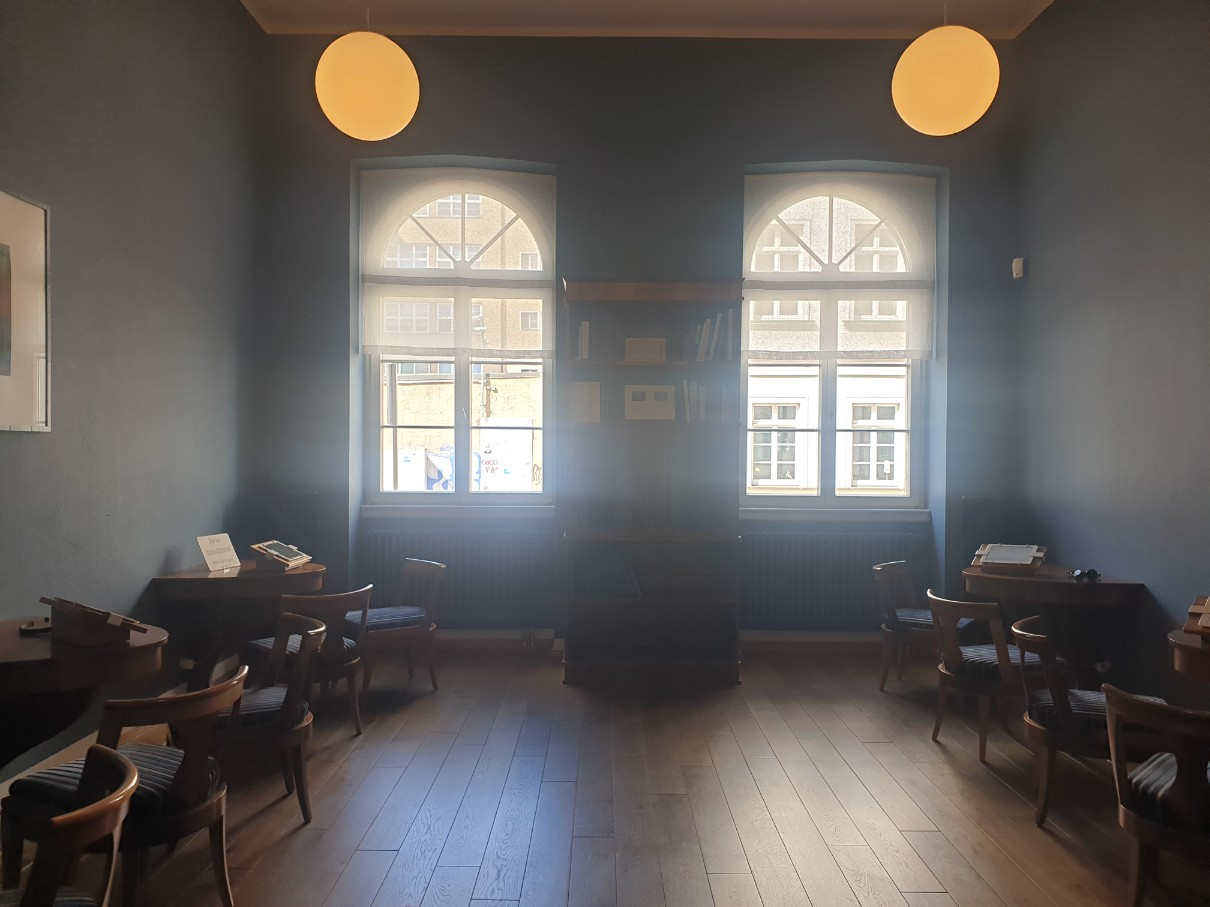 티켓 오피스와 박물관 MD샵, 그리고 카페는 모두 입구에서 제일 가까운 방에 함께 있다. 카페는 도로 쪽을 내다보는 뷰라서 뷰가 썩 예쁘지는 않고, 약 12인 정도만 수용할 수 있다. 나와 내 친구가 락커룸에 옷과 짐을 보관해 두고 제일 먼저 향한 방은 자료실이었다. 12개의 의자와 6개의 미디어 테이블로 구성된 자료실의 가장 귀중한 점은 펠릭스와 파니 멘델스존의 모든 곡이 녹음된 태블릿이다. 나는 멘델스존의 음악 가운데 내가 가장 좋아하는 멘델스존 피아노 트리오 2번 1악장을 느긋하게 듣고 일어났다. 푸른색 벽지 덕에 차분하고 우아한 분위기가 나서 앉아만 있어도 기분이 좋아진다. 그뿐 아니라 태블릿에는 건물의 역사와 멘델스존 남매들의 삶을 압축해서 읽어볼 수 있는 페이지까지 따로 마련되어 있으니 벌써부터 멘델스존에게 진심인 사람들의 향기가 느껴진다.