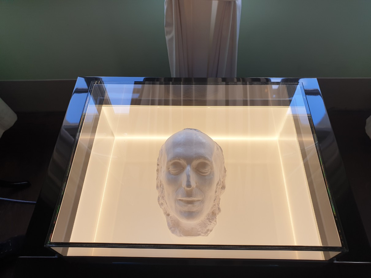 여덟 번째 방은 멘델스존의 침실이자, 멘델스존이 죽은 방이다. 2022년에 올 때만 해도 다른 테마의 전시실이었는데, 2022년과 2024년 사이 멘델스존 연구가 진척되며 멘델스존이 죽은 방이 정확히 어느 곳인지 밝혀져 2023년 11월부터 멘델스존의 죽음을 테마로 한 전시실이 되었다. 다른 박물관보다 유독 멘델스존하우스에서 느낀 점이 많은 건 멘델스존하우스 이렇게 전시 구성을 바꿀 정도로 멘델스존 연구 업데이트에 진심이라는 점을 보여주어서라고 생각한다. 물론 다른 박물관들도 꾸준히 업데이트를 하고 있으나 내가 여러 차례 가지 않았기 때문에 박물관의 발전을 '모르는' 것일 수도 있지만, 이곳만큼 전시에서 애정이 느껴지는 박물관은 분명 드물다. 원래는 11번 전시실인 곁방에 있던 전시물들을 8번 방으로 옮겨왔는데도 전시 구성이 그렇게 어색하지 않다. 오른쪽 왼쪽으로는 두 개의 전시 캐비닛이 있다. 하나는 멘델스존이 과로하게 한 원인이었던 베를린과 라이프치히에서의 이중생활을, 다른 하나는 최말년을 다룬다. 내가 멘델스존 전기를 읽을 때면 늘 지루함에 읽다가 졸거나 건너뛰어버린 시기의 이야기다. 1841년부터 1845년까지, 멘델스존 인생이 가장 혼란스러운 시기다. 한편으로는 베를린에서 궁정 교회음악 작곡가로 임명하는데, 다른 한편에서는 라이프치히에서 여전히 멘델스존을 필요로 하고 있었다. 멘델스존은 베를린에서 일을 해보지만 답답한 행정처리와 유명무실한 본인의 직책으로 인해 불만을 느낀다. 한동안은 베를린과 라이프치히 사이에서 왔다 갔다 하던 멘델스존은 1845년 베를린을 완전히 포기하고 라이프치히로 돌아간다. 그리고 이 귀환과 함께 구입한 집이 바로 이 글의 주인공인 골드슈미트슈트라세 12번지다. 문제는 이때쯤이면 멘델스존은 베를린과 라이프치히 왔다 갔다 하랴, 늘 그렇듯 영국도 다녀오랴 작곡도 하랴 라이프치히에서 감독직도 하면서 베를린에서 한여름밤의 꿈 공연도 올리랴 가족도 챙기랴 하며 이미 건강이 망가지기 시작했다는 것이다. 일각에서는 가족들이 대부분 30대 후반에서 40대 초반에 가족력인 뇌졸중으로 죽는 것을 본 멘델스존이 본인도 그렇게 될 것을 예감하고 아이들을 키울 돈을 미리 벌어놓기 위해 더 과로했다는 이야기도 있다. 어찌 됐건 멘델스존은 강박적일 정도로 열심히 일했고 아내의 만류에도 불구하고 '40살 생일에 정말 은퇴할 거다' '이것만 다 하고 쉰다' 며 스스로를 혹사시켰다. 본인도 본인의 건강이 좋지 않다는 점은 인지하고 있던 것 같다. 하긴 5월에 누나가 뇌졸중으로 급사한 것을 들었으니 모를 수가 없었으리라. 이미 쌓인 육체적 피로에 누나의 죽음으로 인한 스트레스가 겹쳐 은퇴하면 프랑크푸르트 어디에 집을 짓고 살지까지 계획해 놓았던 멘델스존은 결국 은퇴도 하기 전 쓰러지고 만다. 9월 무렵에는 갑작스러운 두통과 통증에도 불구하고 얼굴이 백지장처럼 질려 몇백 미터를 걸어오고, 결국 10월부터 한 달간은 호전과 악화를 반복하며 죽음의 기로에서 왔다 갔다 한다. 8번 전시실의 하이라이트는 방 한가운데 놓인 멘델스존의 데스마스크와 멘델스존 사후 잘라둔 멘델스존의 머리카락, 그리고 남편의 병환과 죽음을 상세하게 기록해 둔 세실의 노트다. 대부분의 설명은 펜형 오디오가이드로 듣는 것과 달리, 세실의 노트 내용은 캐비닛에 붙어 있는 스피커를 마치 전화를 받듯 귀에 대고 들어야 한다. 담담한 목소리로 읽어주는 기록을 듣고 있으면 마음이 먹먹해진다. 멘델스존의 유언은 '지쳤어, 너무 지쳤어'로 알려져 있는데, 이는 멘델스존이 잠깐 정신을 차렸을 때 세실이 그에게 기분은 좀 어떻냐, 몸은 괜찮냐고 물어본 것에 대한 대답이었다. 멘델스존은 가족친지들이 보는 앞에서 1847년 11월 4일 오후 9시 30분경 숨을 거둔다. 친구 에두아르트 벤데만이 그린 그림과 데스마스크에서도 멘델스존은 미소를 짓고 있다. 짧지만 걸작을 써내고, 행복한 가정을 꾸리고, 오케스트라 하나를 세계적인 수준으로 끌어올리고, 학교를 세우고, 역사의 저편에 묻혀 있던 작곡가를 위대한 작곡가의 반열에 올려도 본 풍성한 삶이었다.
