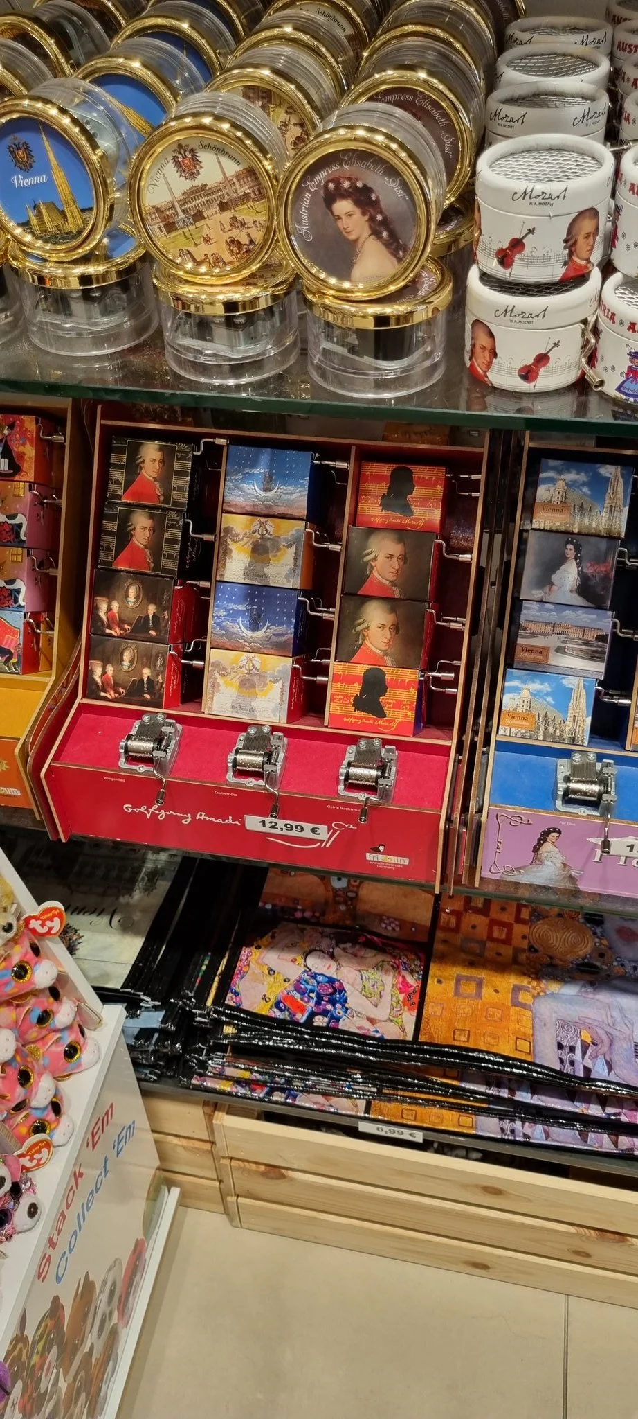 2022년 6월 빈 기념품 상점 내부. 이렇게 죽어라 모차르트를 팔지만 박물관 모양새를 보면 역시 씨씨 황후 1승이다.