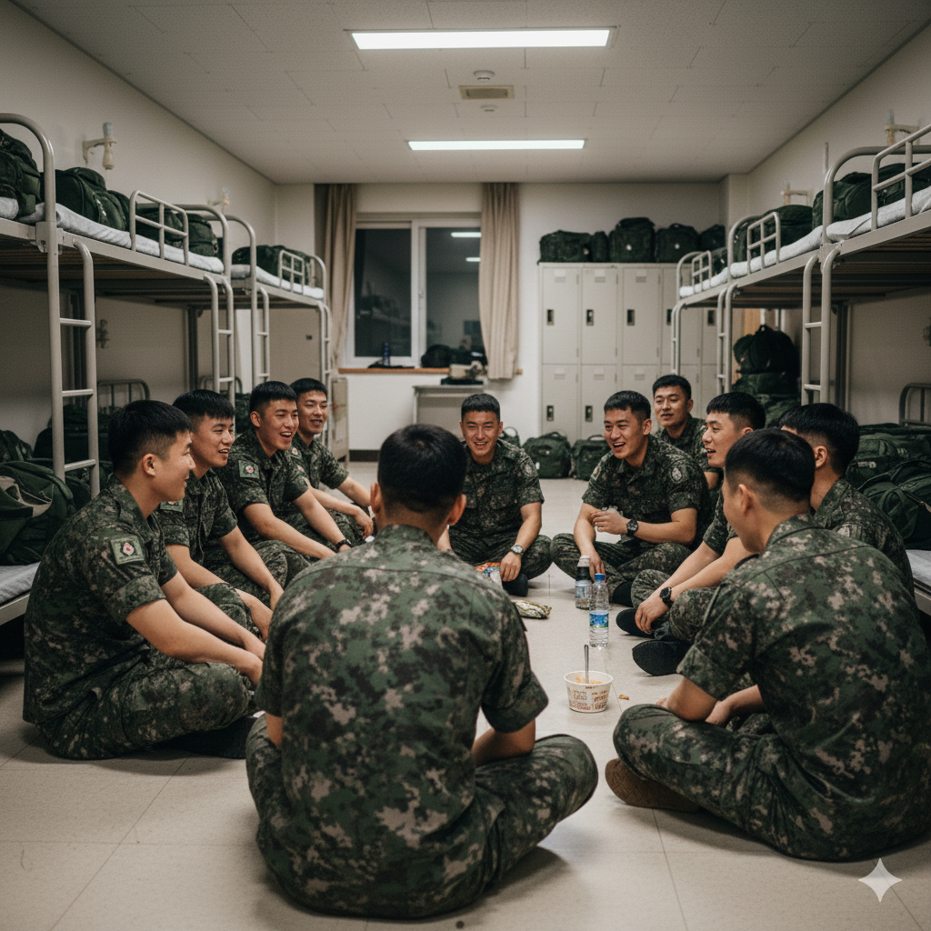 점호를 마치고 잠시 생활관 바닥에 모여 잠시 분대장들에 대한 이야기를 했다. 앞에서는 화도 많이 냈지만 뒤에서 남 모르게 상담도 해주고 많이 챙겨주었던 K 분대장과 C 분대장에 대한 칭찬과 함께, 서로 처음 만난 날의 첫인상을 공유하며 한참을 웃다 시계를 보니 12시가 넘어 잠에 들었다.
