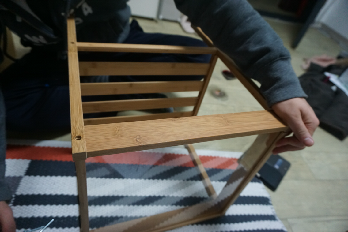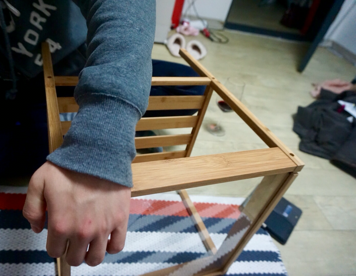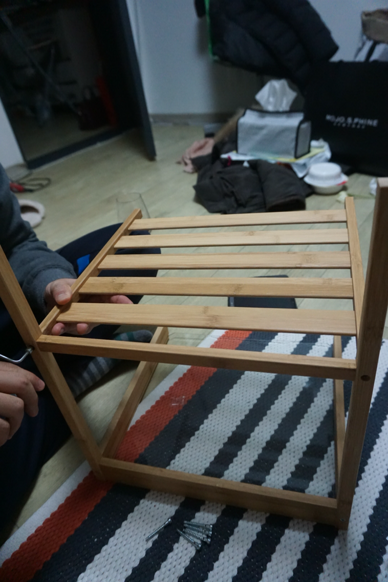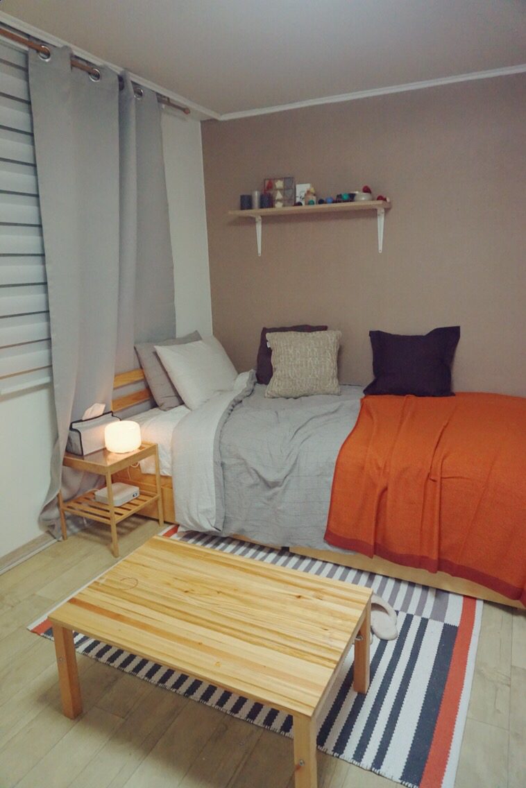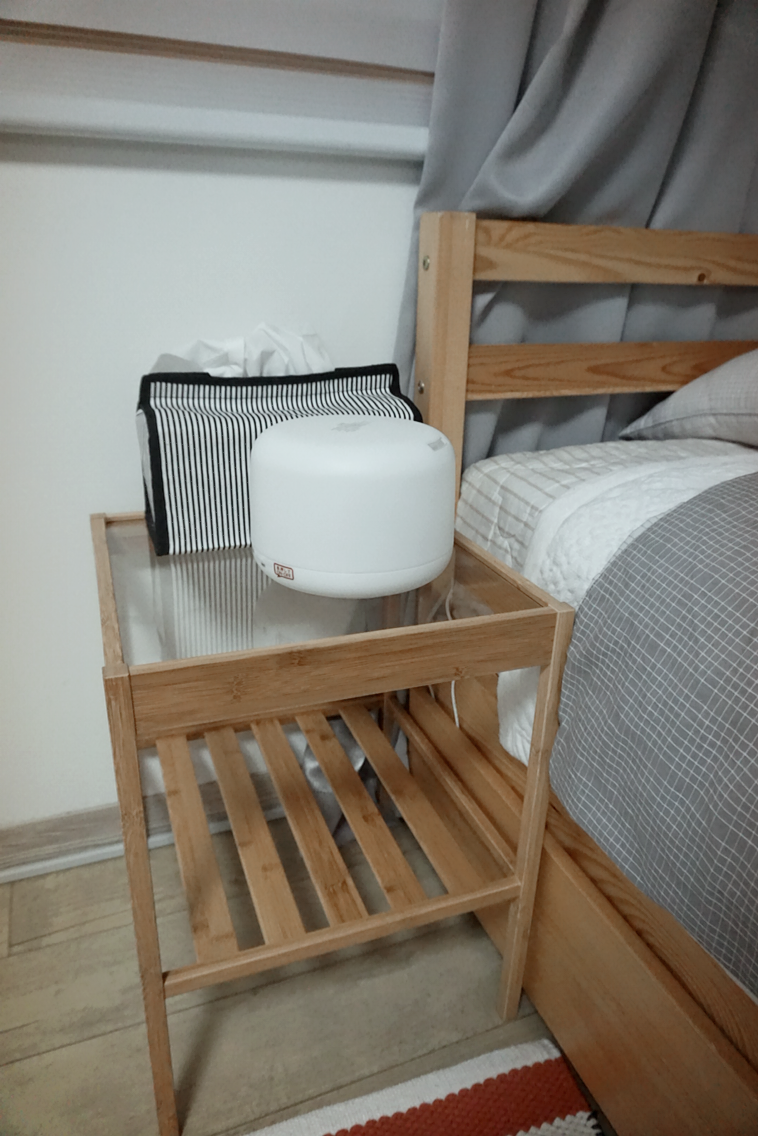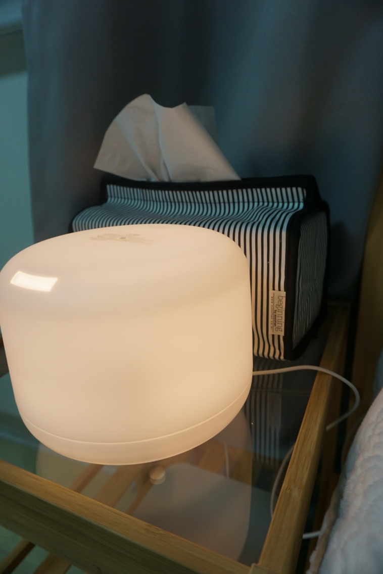 위에는 MUJI 디퓨져 조명과 티슈케이스