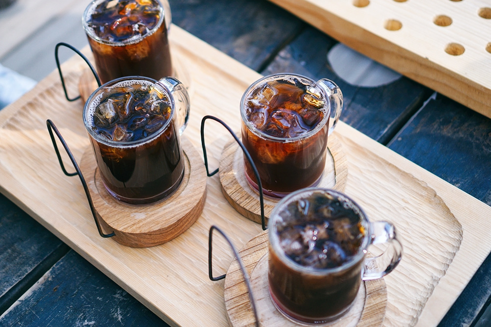 컵 받침도, 쟁반도 모두 수공예품이다.