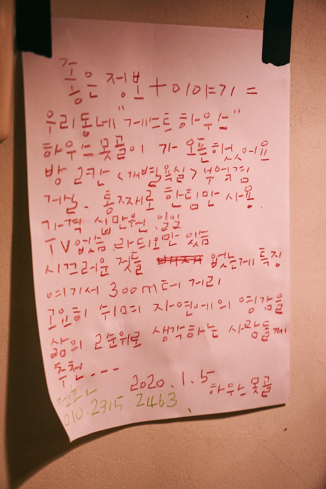 삐뚤빼뚤한 손글씨가 이 공간을 하나하나 손수 만들었을