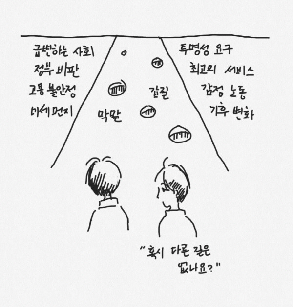 중요한 것은 “그 편한 공무원 일이 힘들면 다른 일은 어떻게 하냐?”는 말에 흔들리지 않고, 현 시점에서 나 자신과 나를 둘러싼 상황을 돌아보는 것이다. 나의 성향과 나의 경쟁력, 조직의 성향, 주위 사람들의 성향, 현재 맡고 있는 일의 성향, 정부 조직 바깥 세상의 상황 같은 것 말이다. 다음 두 번째 제안과 연결된다.