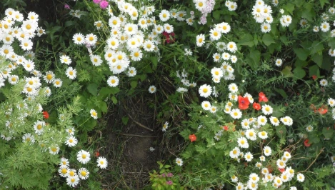 중랑천 산책로를 돌아오다가 자전거도로에 핀 야생초들을 만났단다. 긴 도로를 따라서 샤스타데이지가 하얗게 무리를 지어 피었더구나. 가느다랗고 긴 줄기에 달린 꽃송이들이 바람에 작은 손을 흔들며 귀여운 웃음으로 반겨줬단다. 하지만 아쉬운 건 꽃들 사이에 밟힌 꽃들이란다. 활짝 핀 꽃 사이로 사람들이 들어가 자리를 잡고 앉아서 사진을 찍느라 밟히고 꺾여버린 가지들이었단다. 꽃밭에 마치 무늬라도 넣은 것처럼 말이야. 무성하게 피었던 꽃밭은 참혹하게도 듬성듬성 사람들이 만들어 놓은 구멍들만 남아 있단다.