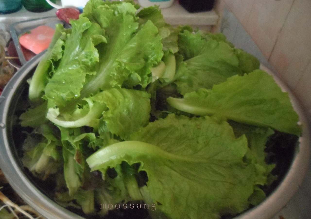 냉장고에 쌈채소가 남아 있는데, 또 수확한 채소가 쌓였다. 항상 냉장고 야채 박스가 꽉 들어찼다. 아이들은 청상추, 로메인 상추처럼 연한 것을 좋아했다. 치커리 같은 쓴 채소는 아이들이 먹지 않아서 늘 남았다.