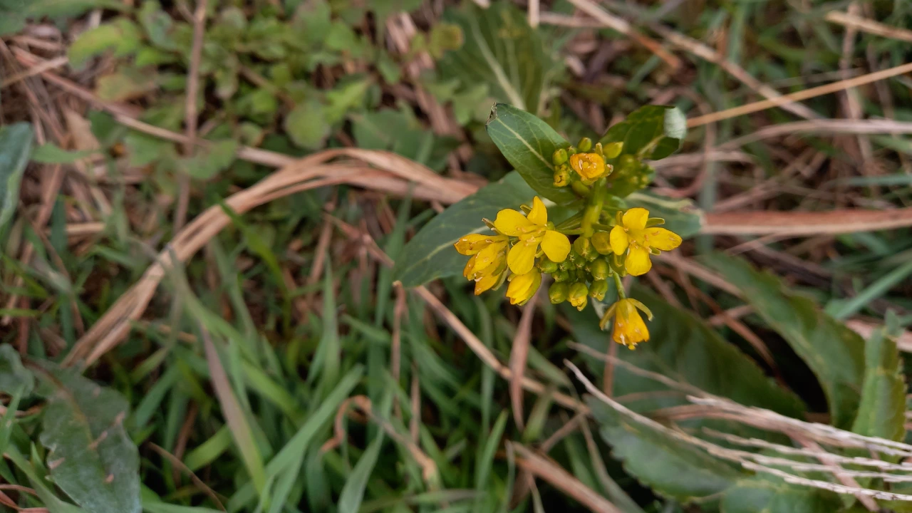 걷다 보니 야생화 꽃밭이 궁금해졌다. 꽃밭엔 초록은 거의 사라지고 대부분이 옅은 황토색으로 뒤덮여 있었다. 초록이 남은 곳에 작은 노란 꽃이 보이길래 궁금해져서 다가갔다. 유채꽃 하나가 피어나 있었다. 마치 찬 겨울이 남은 초봄을 연상하게 한다.