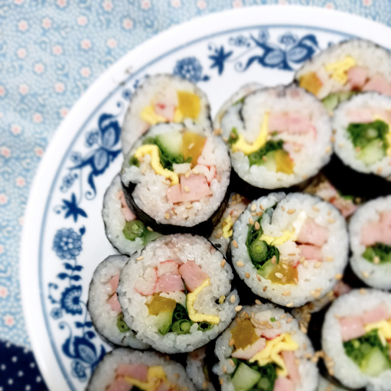 어쩌면 김밥이 먹고 싶어 소풍 가는 날을 기다리던 마음이 남아 있어 내가 인정 못하는 것일 수도 있다. 팬데믹과 미세먼지로 맘 놓고 소풍을 가던 일이 까마득하지만 김밥은 우리 집 단골 메뉴다.
