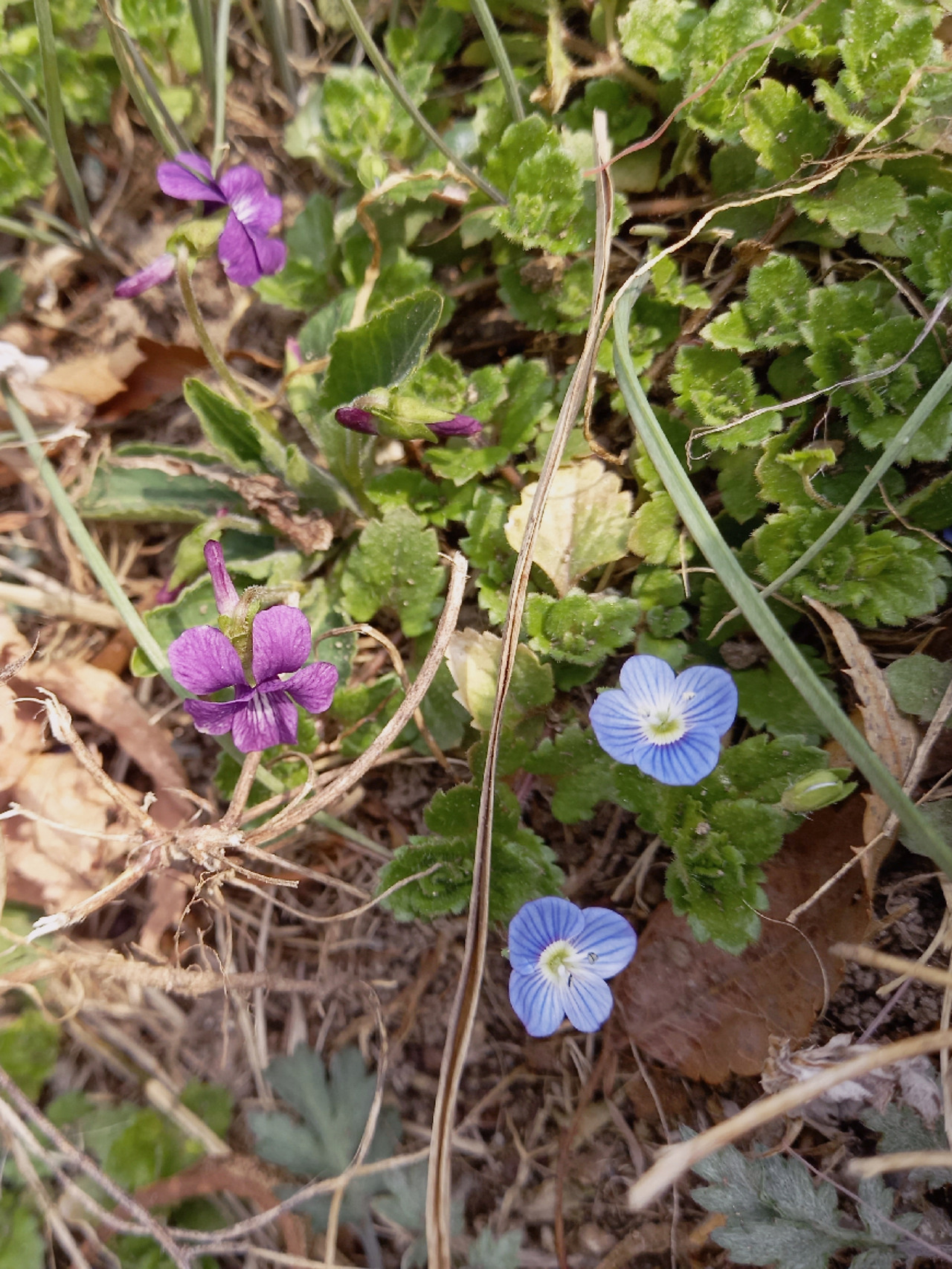 야생화들이 피는 후미진 곳에선 흔히 보는 것(^^;) 중에 하나다. 혹시나 모르고 밟을지 몰라 조심스럽게 주변을 둘러봤다. 그런데 아까는 보이지 않았던 제비꽃이 있었다. 봄에 만난 첫 제비꽃이다. 개에게 놀란 일은 금세 잊어버리고, 아이 하교시간 알람이 울릴 때까지 봄을 즐겼다.