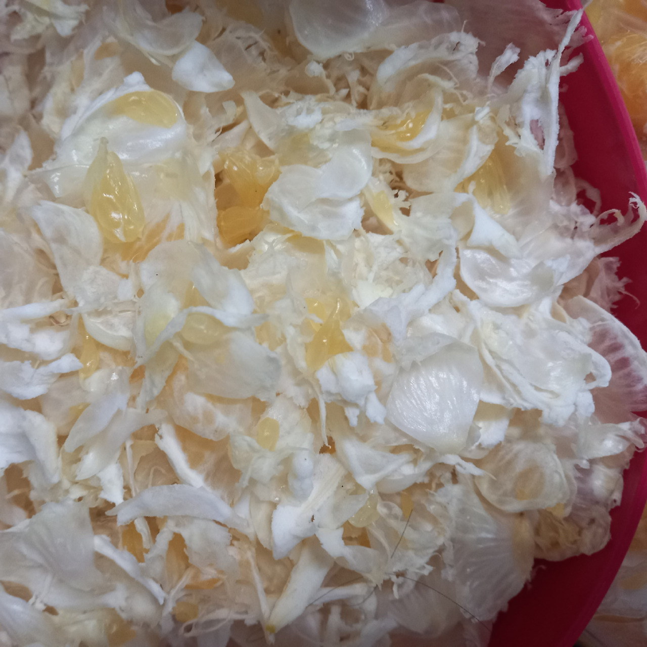 먼저 단단한 껍질을 칼로 그어서 벗겨낸다. 벗겨낸 속엔 하얀 스펀지가 감싸고 있는 듯 도톰한 속껍질이 있다. 이 속껍질을 다 벗겨내야 먹을 수 있다. 보기엔 하얀 껍질이지만 맛은 머리가 아플 정도로 쓰다. 속 알맹이가 나오면 또 남은 건 씨앗이다. 씨앗은 레몬 씨앗처럼 쓰디쓰다. 씨앗이 섞여 잘 못 씹으면 입안에 것을 모두 뱉어내야 한다.