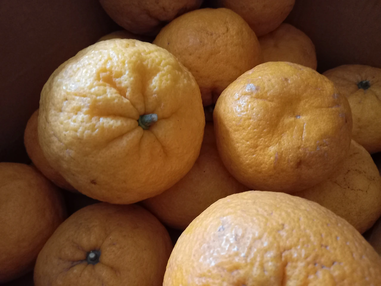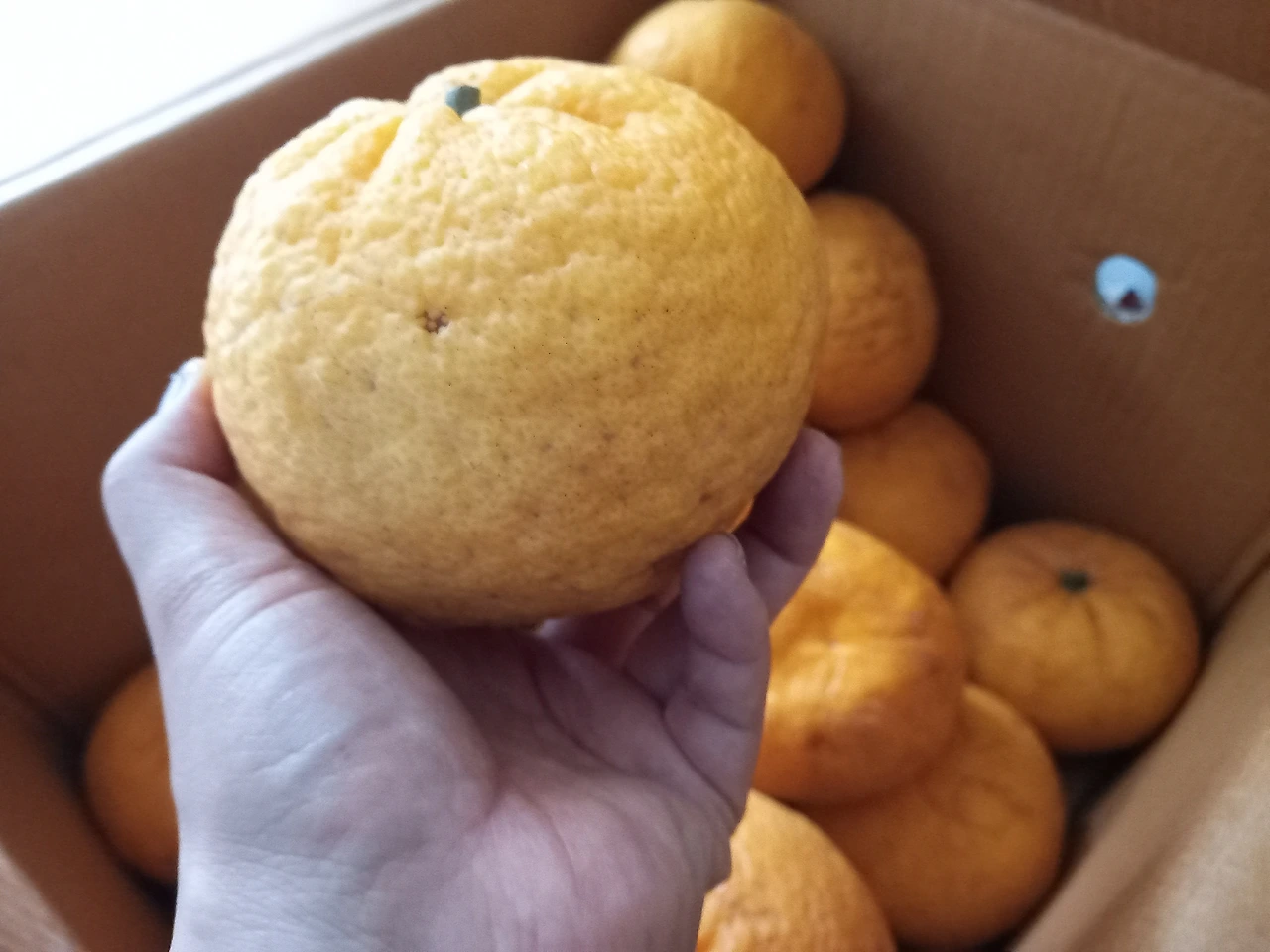 택배상자를 열어보니 중간 크기의 하귤이 들어있었다.