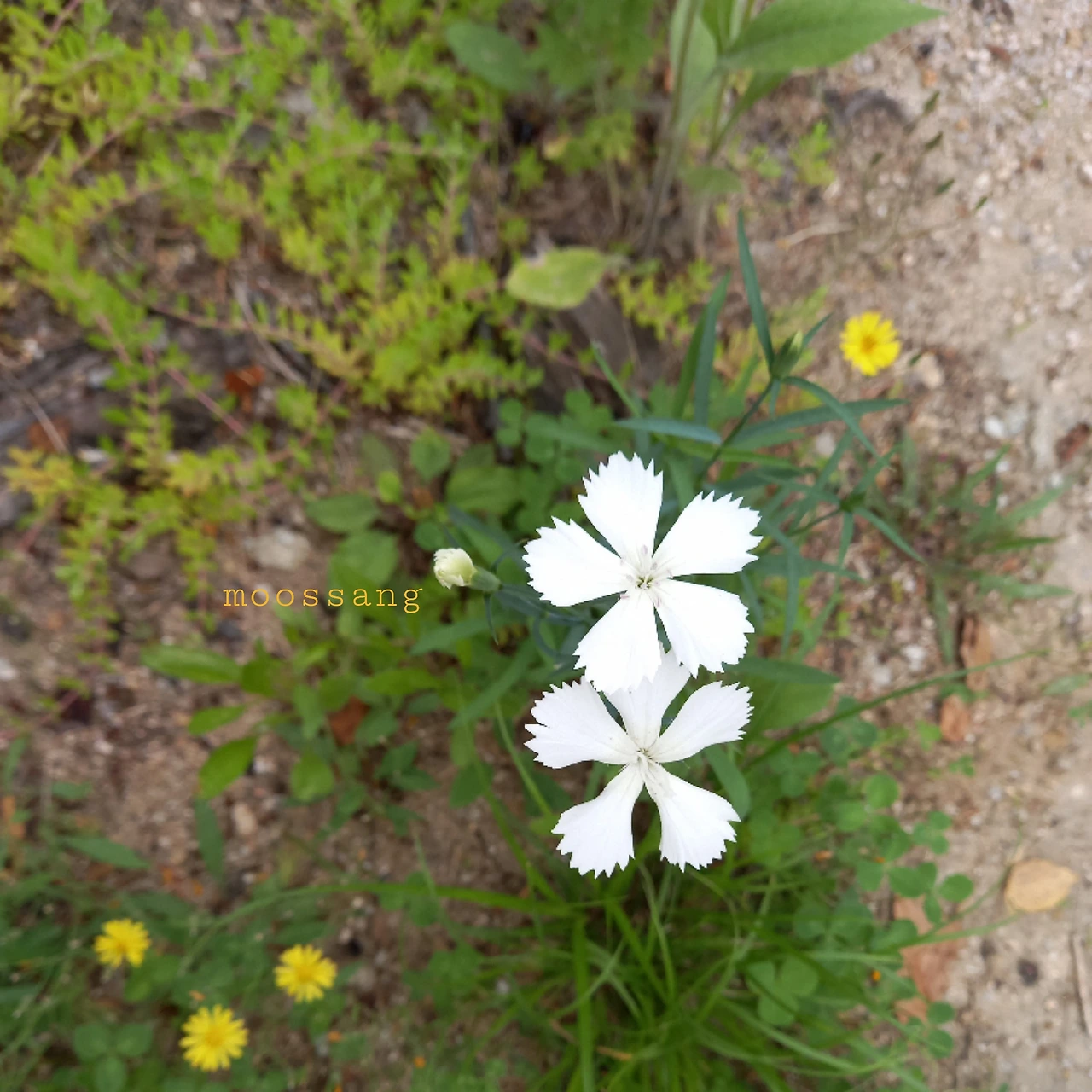 얼마 전부터 눈길이 가는 야생화가 있다. 느티나무 아래 돌나물과 씀바귀와 흰 패랭이가 자리를 잡았다. 아무것도 없었는데 늘 그렇듯 야생화들이 알아서 피어났다. 패랭이 꽃이 새하얀 한송이가 피더니 어제는 두 송이, 오늘은 세 송이가 되었다. 가장자리에 작게 오린 듯 섬세한 꽃잎은 대칭이 딱 맞아 유난히 들여다보게 된다. 하얀색의 꽃은 아롱아롱 작은 손을 흔들며 웃어 주었다.