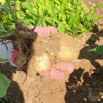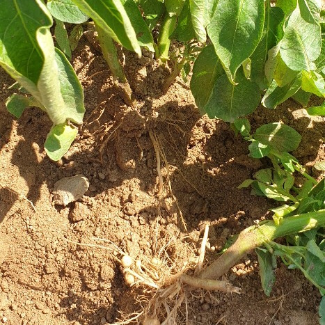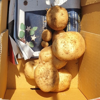 6월에 내린 비는 장마처럼 며칠 씩 내렸다. 2-3일은 비가 내리고 하루쯤 해가 뜨니 밭은 물을 줄 필요가 없었다. 늘 땅은 젖어있었다. 감자가 썩지는 않을까? 땅속에 물이 고여 있는 것은 아닌가? 걱정이 되었다.나를 안심시키려고 했는지, 하루는 감자 한 알이 새 차 게 내린 비에 흙 위로 나왔다. 자두 만 한 감자알은 마트에서 보던 포실포실 껍질이 살짝 벗겨진 모습이었다.