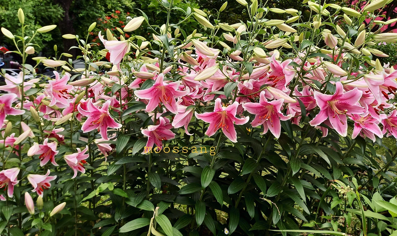 화단에 핀 백합꽃
