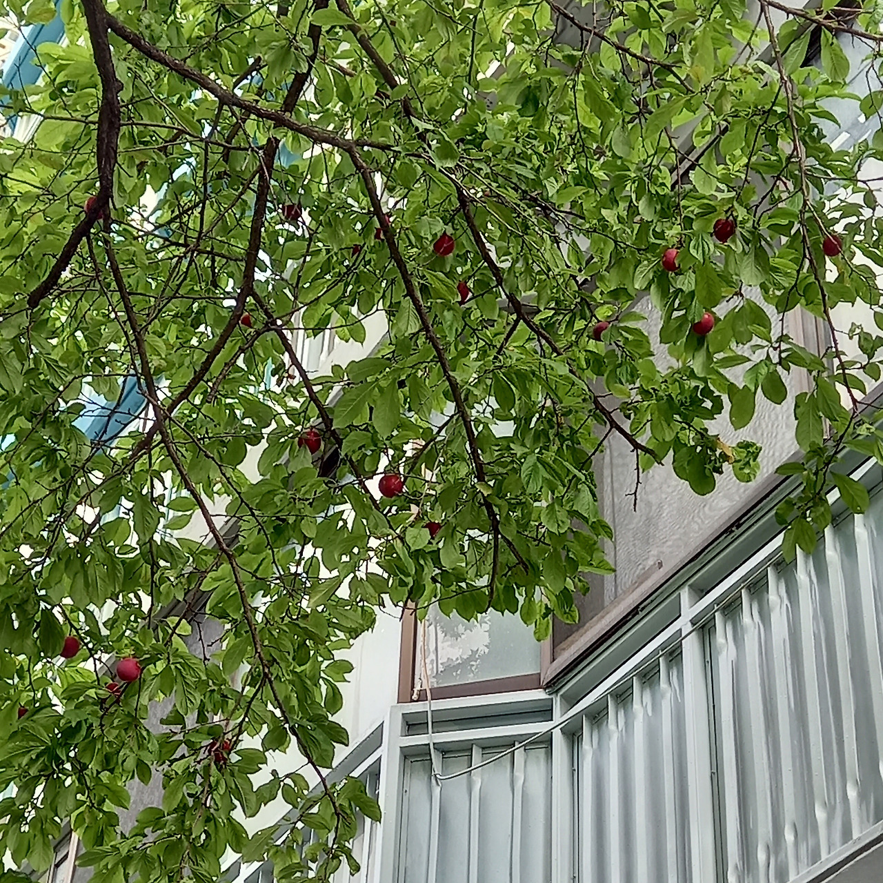 떨어진 자두와 5층 난간까지 뻗은 자두
