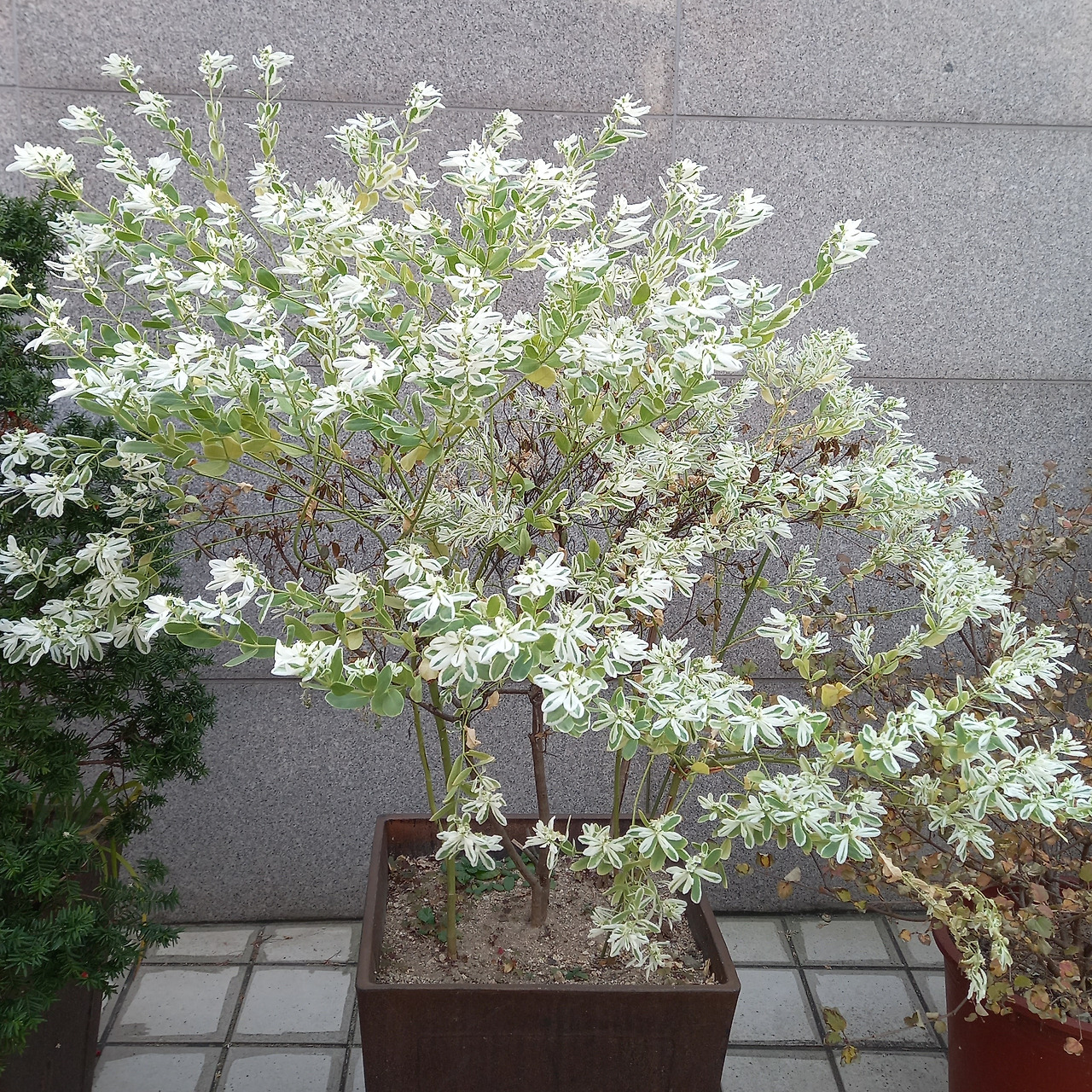 봄엔 그저 초록잎이 달린 외줄기가 자라는데 여름 무렵 줄기 끝에 하얀 꽃이 핀다. 잎 사이에 조그마한 꽃이 계속 피는데, 신기하게도 잎도 분을 바른 듯 테두리가 하얗게 변해간다. 마치 잎이나 꽃이나 한 몸처럼 있는 그대로가 흰 꽃이 되어 갔다. 바깥에서부터 하얗게 변한 잎은 중심부에 가늘게 초록 흔적만 남는다.
