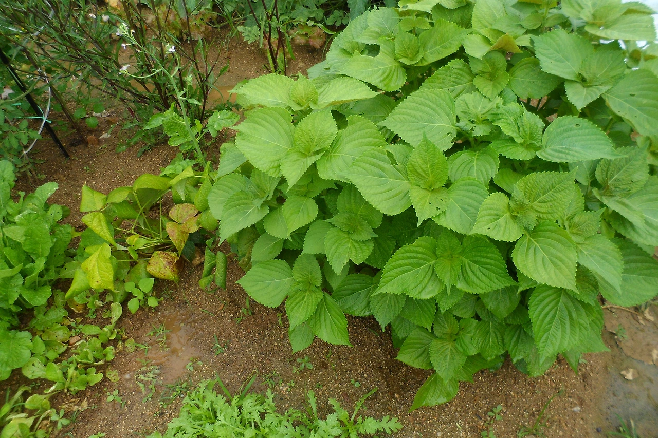 깻잎은 직접 파종하지 않고 화원에 파는 모종을 심었다. 씨앗을 심는 것보다는 모종으로 심는 편이 수확시기도 당기고 병충해도 덜 한 듯했다. 5월에 심은 모종은 한참 잎채소 수확할 땐 아이 손바닥만 한 잎만 달렸다. 좀처럼 크지 않으니 다른 입 채소 수확에 더 열중했었다. 하지만 왠지 쌈채소 모둠에 깻잎이 빠지는 것이 아쉬워 작지만 몇 개씩 뜯어 왔었다. 깻잎은 너무 작은 데다 향도 없고 맛도 나지 않았다.잎 수확을 하기 위해서 기다림을 배워야 했다.