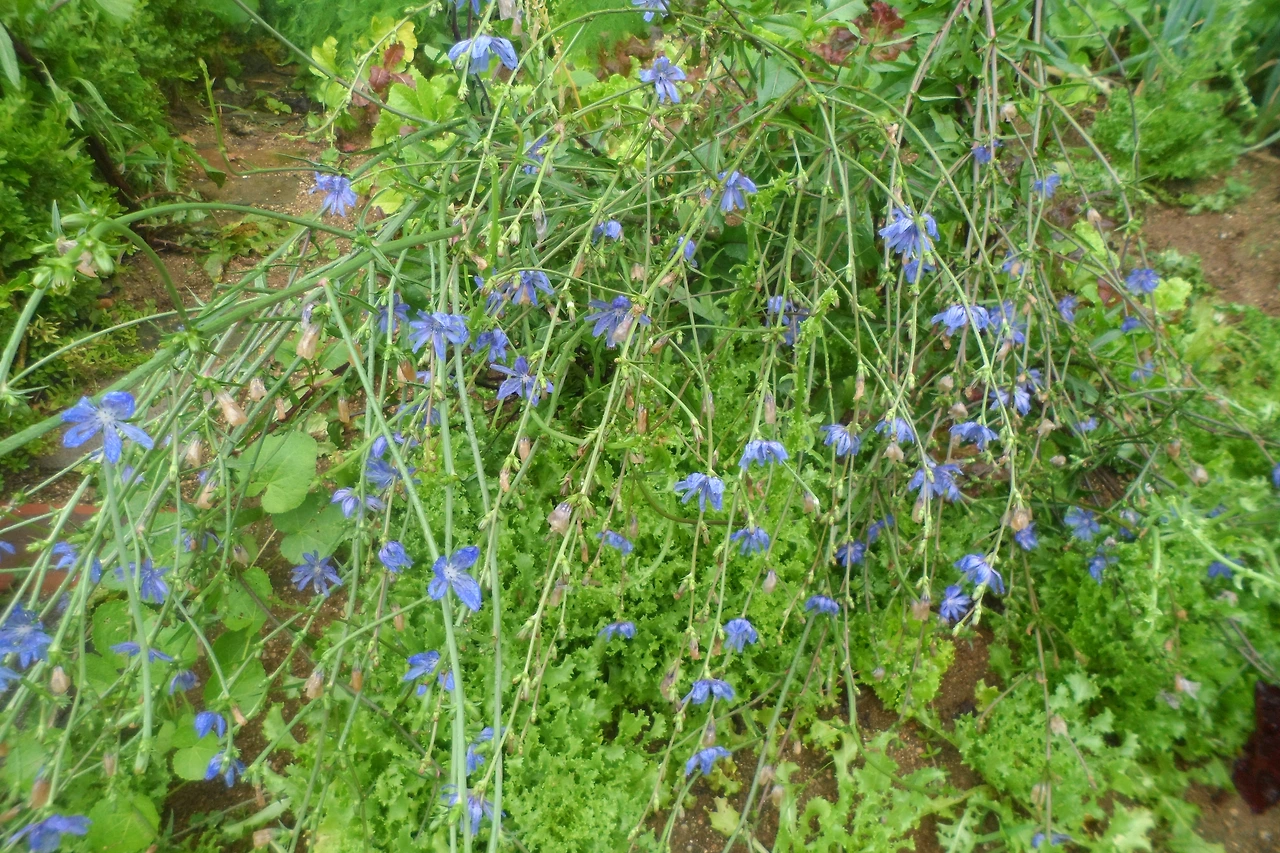 치커리는 씨를 하려고 꽃이 피는 대로 두었더니 밭을 덮을 지경이었다. 치커리 꽃은 수레국화만큼 곱지만 하루면 시들어 버린다. 꽃송이를 잘라서 물어 띄웠더니 파랗게 꽃봉오리가 열렸다. 유난히 작은 비트가 귀엽다며 아이가 물컵에 꽂아두었다. 텃밭을 다녀왔더니집안이 더 북적해진 기분이다.