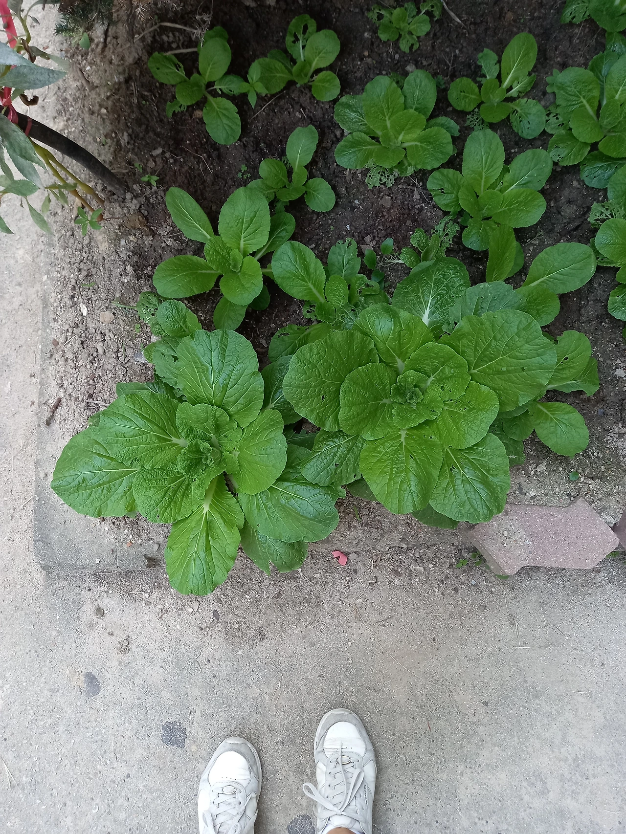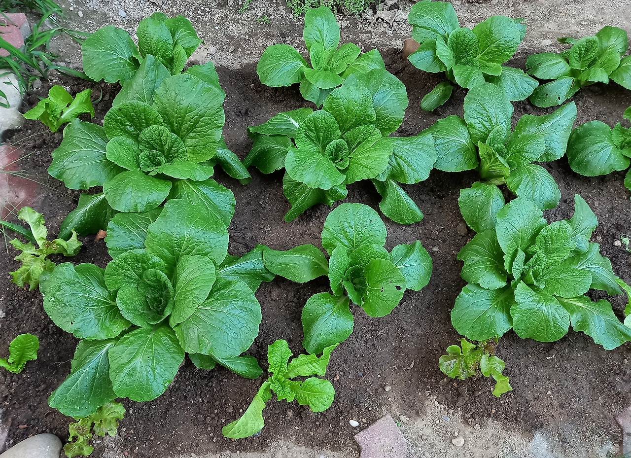 그나저나 너무 배추만 신경썼나? 텃밭에 가지 않았는데 내 눈엔 배추가 자꾸 보였다. 동네 화단에 배추 모종을 누가 싶었는지, 벌써 얼굴만 하게 자랐다. 배추 사이에 심은 상추도 우리 밭 상추보다 더 잘 자라는 듯 했다.
