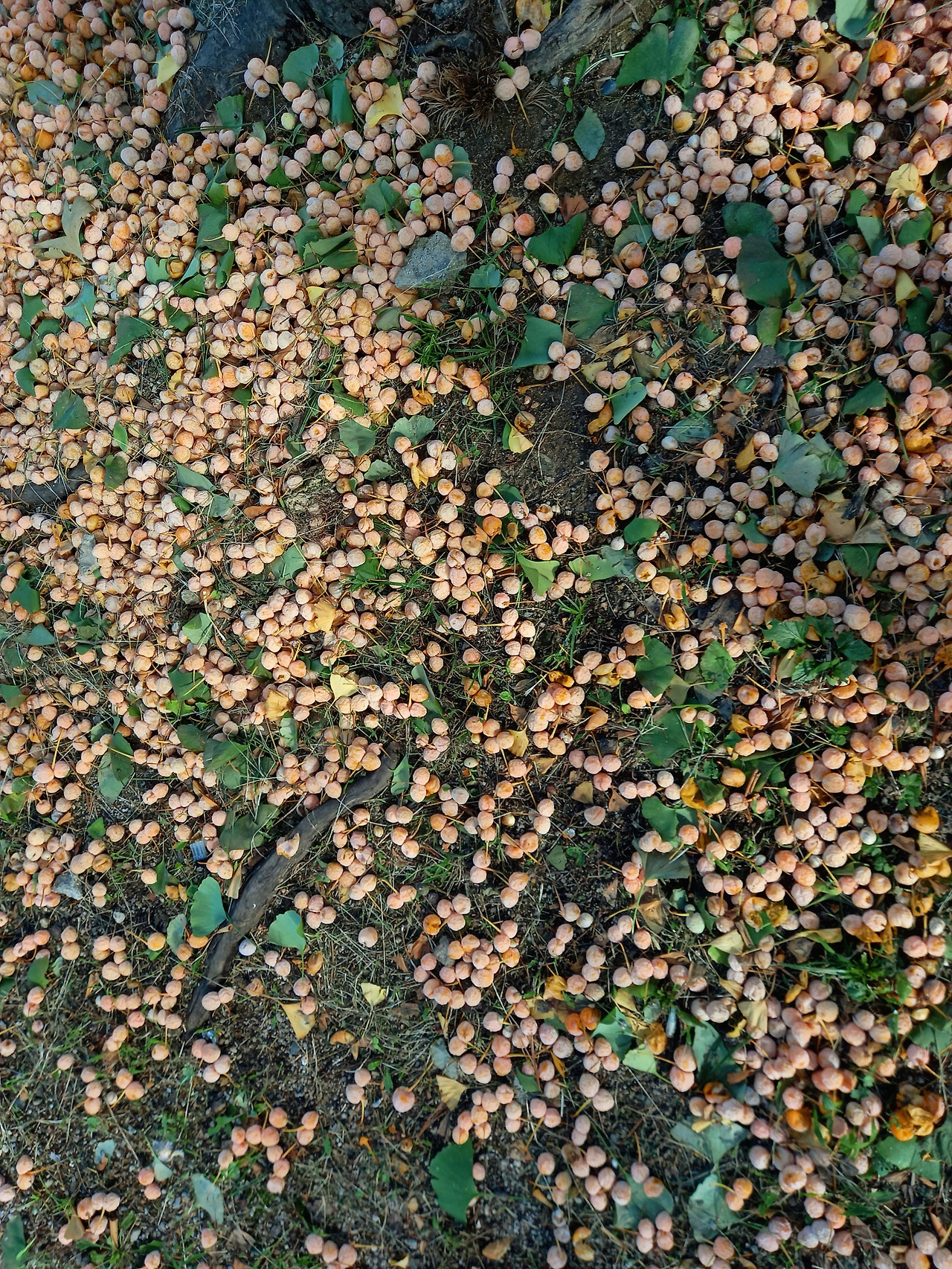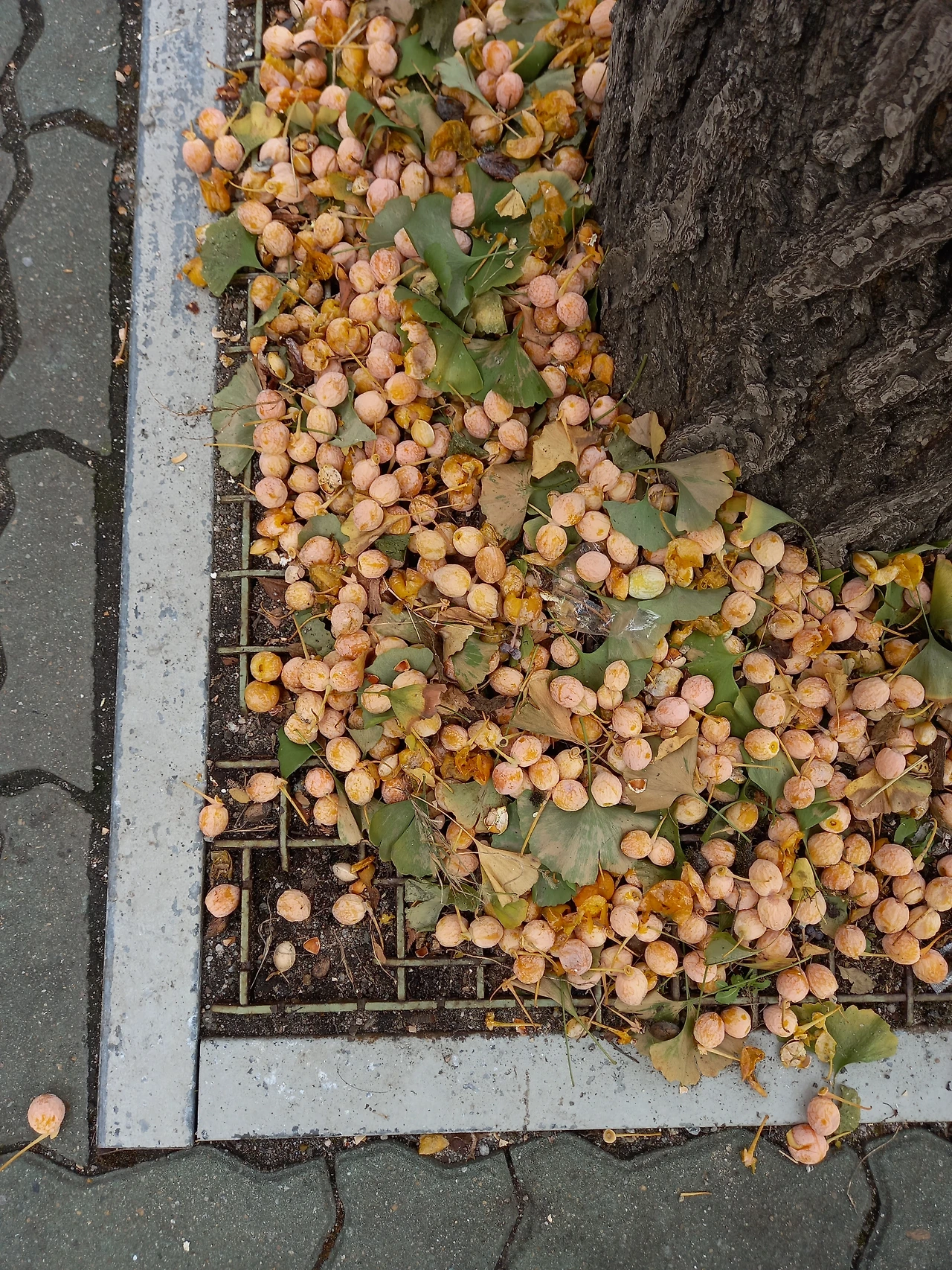 은행은 효능이 많은 나무지만, 아쉽게도 은행 열매를 감싸는 끈끈하고 고약한 겉 부분이 문제다. 나무 아래만 오면 열매를 피하느라 인상 쓴 얼굴로 모두 까치발을 한다. 아이들은 '똥 열매'라고 '꺅꺅' 소리를 지르며 도망가기도 했다. 도시에 떨어진 은행은 혐오 논란이 많다. 신발이라도 묻으면 냄새가 잘 지지도 않을뿐더러, 묻은 줄 몰라 오해받기도 쉽다. 가로수 은행나무 소란을 피해 공원에 들어서니 화단에 은행나무도 열매를 한가득 쏟아내고 있었다. 큰 화단에 떨어진 열매는 터지지도 않은 채 냄새도 풍기기 않았다. 잘 익은 살구가 떨어진 듯 사진으로 담은 풍경은 나쁘지 않았다. 서있는 자리가 다른 것뿐인데, 상대적으로 억울한 신세도 있겠구나 싶었다.