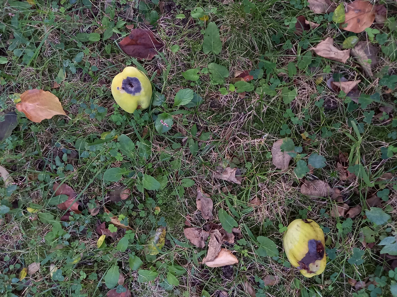 화단엔 산수유가 초록색 열매를 치렁치렁 달렸고, 모과는 부풀어 제법 커졌다. 감나무들도 이제 초록색으로 제 모양을 갖춘 듯 가을은 열매의 계절이었다. 그런데 내 눈에 또 억울한 신세가 보였다. 멀쩡한 모과가 새가 쪼았는지 구멍 난 채 바닥에 쏟아져있었다. 모두 같은 구멍이 나있는 걸로 봐선 같은 이유로 떨어진 듯했다.