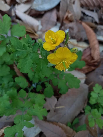 낙엽 이불을 덮은 애기똥풀꽃도 활짝 피었다. 얇고 노란 꽃잎과 선명한 녹색 이파리는 봄의 싱그러움을 느끼게 한다.