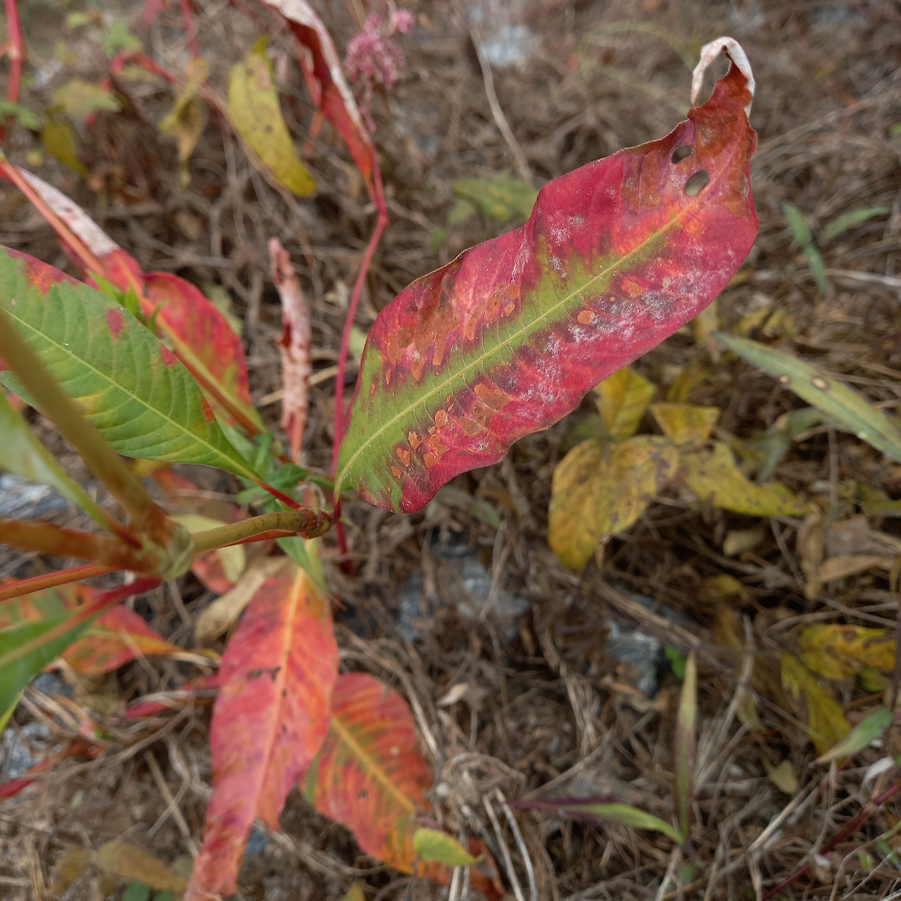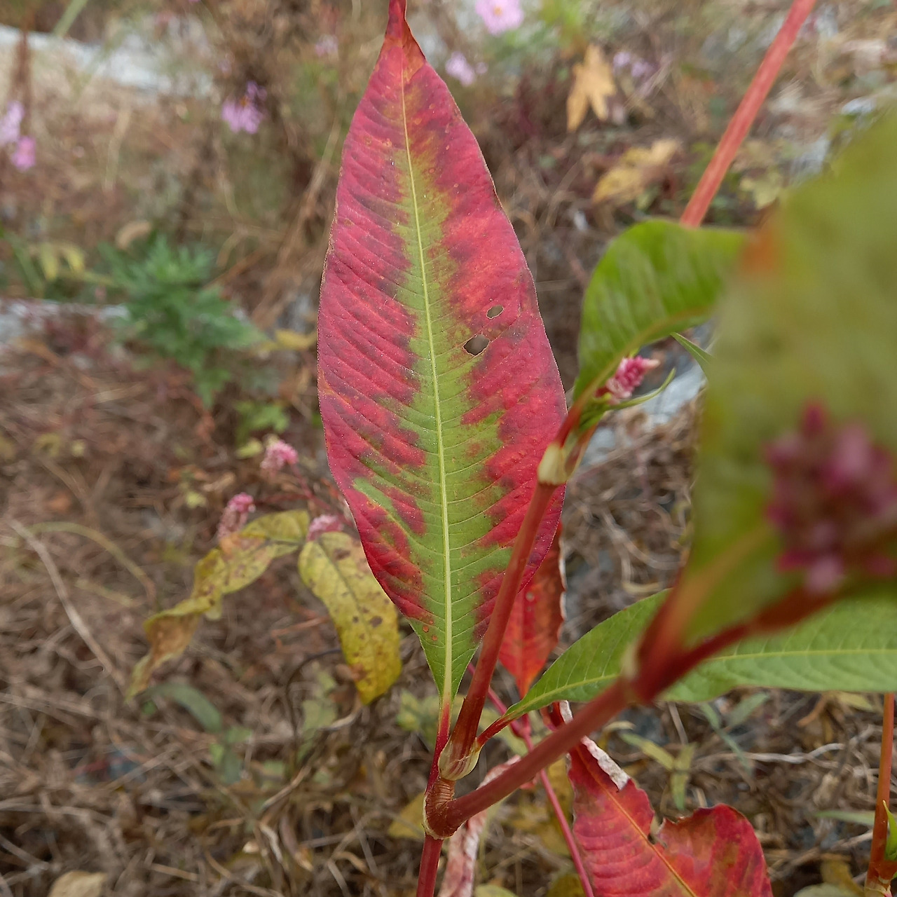 중랑천 물가엔 사람 손이 미치지 않은 야생이 남아 있었다. 초록잎이었던 여뀌는 가장자리부터 발그레 수줍은 얼굴이 되었다. 단풍 물이든 잎이 붉은 장미 꽃잎처럼 보이고, 다닥다닥 분홍색 알갱이가 붙은 모양의 꽃은 꽃잎 안에 있는 수술이 길게 나온 것처럼 보였다.